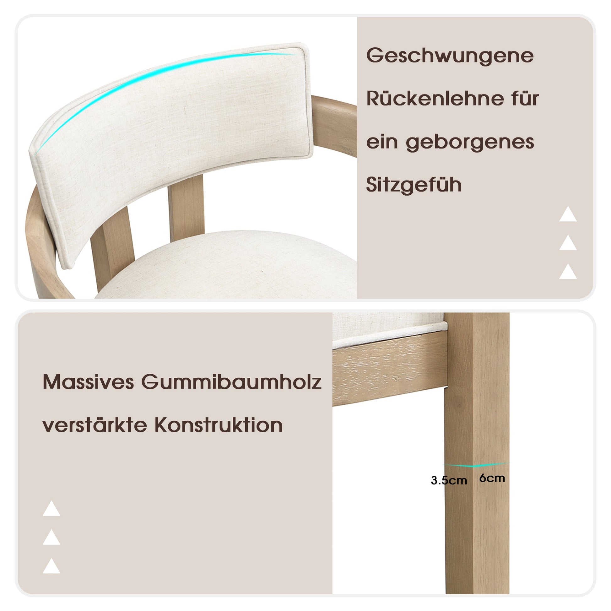 2 Solid Wood Dining Chairs Comfortable Modern Style Linen Fabric Natural Color