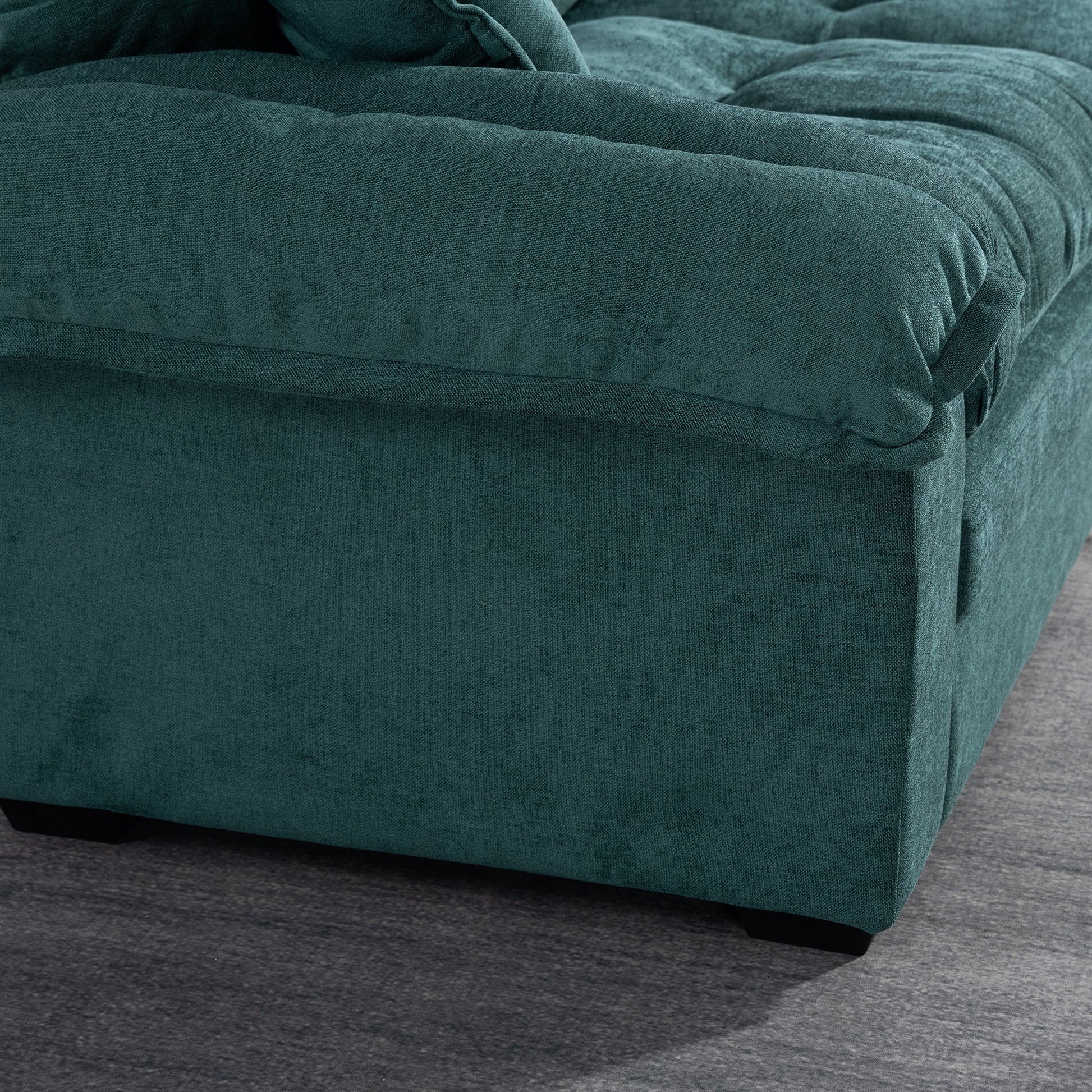 The sofa includes seat cushions that are removable. It is approved for residential use only and requires adult assembly, which takes approximately 25 minutes.