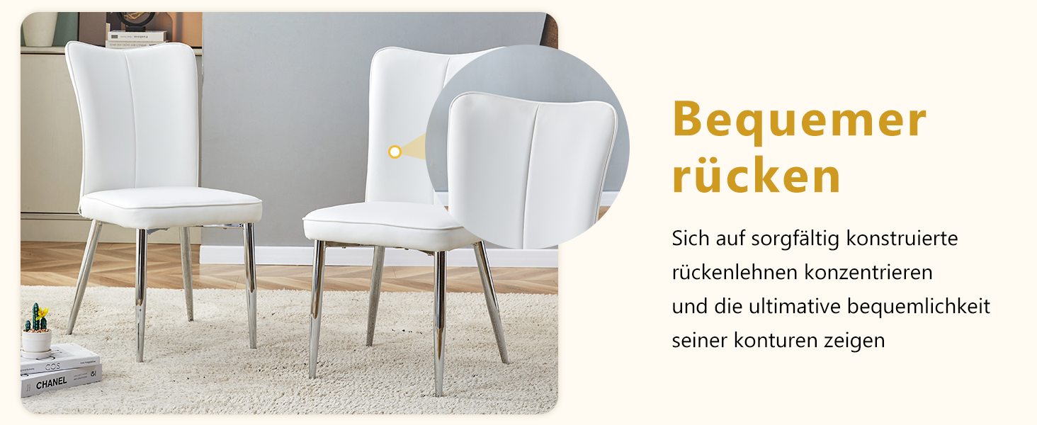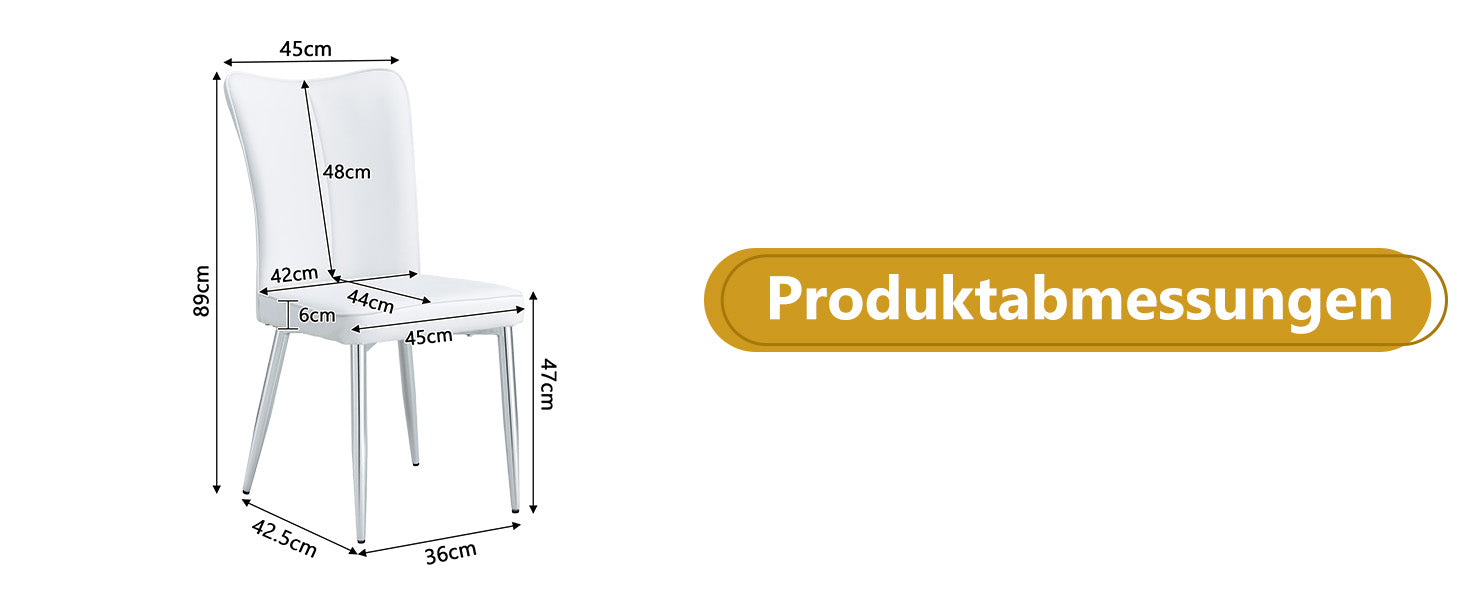 High-quality and easy-to-clean material: The backrest and seat are made of PU material combined with metal components. This not only gives it an elegant look but also makes cleaning particularly easy. A simple wipe with a damp cloth and mild detergent is all it takes to make the dining chair look like new.