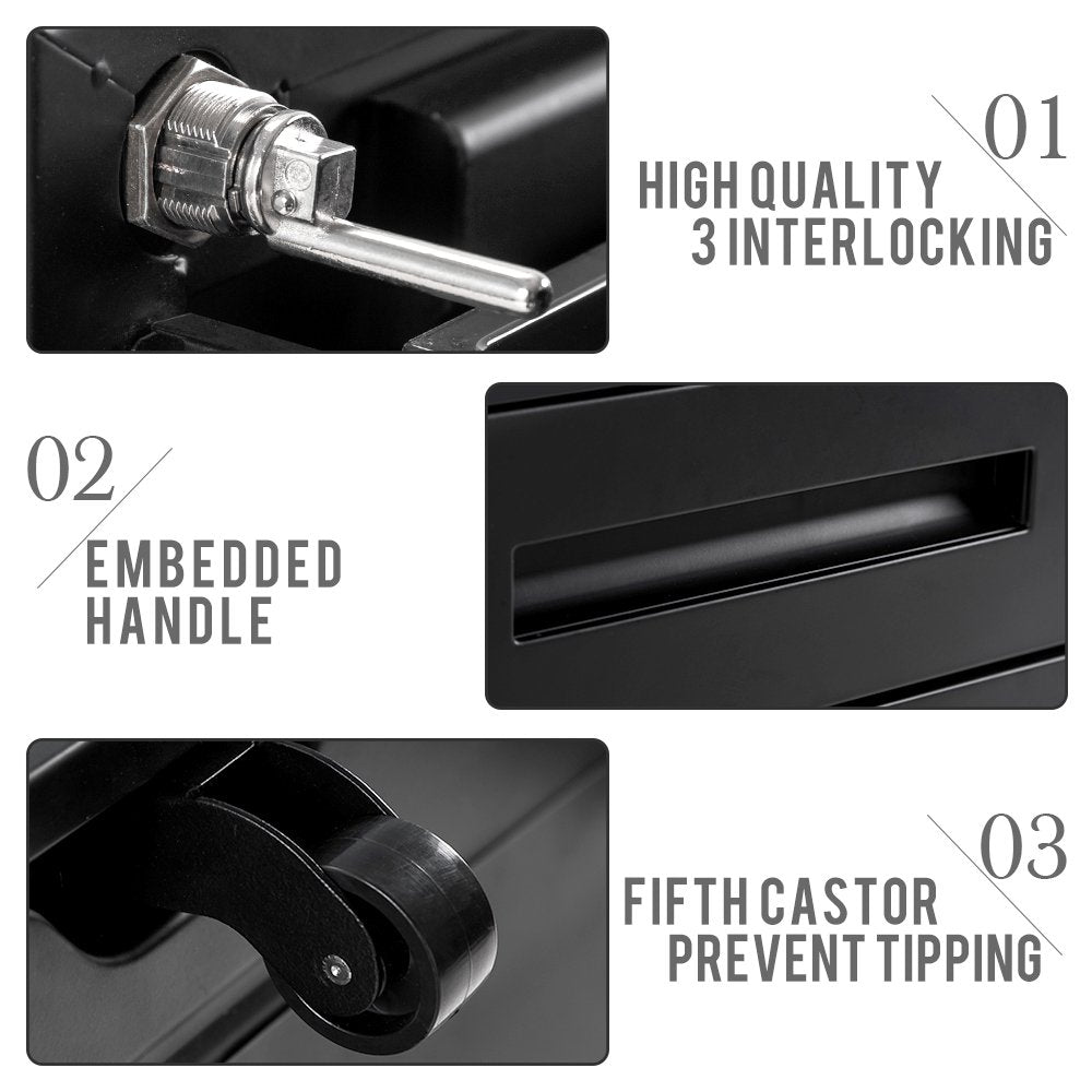 3 Drawer Steel Metal Filing Cabinet with Embedded Handle and Lock (Black)