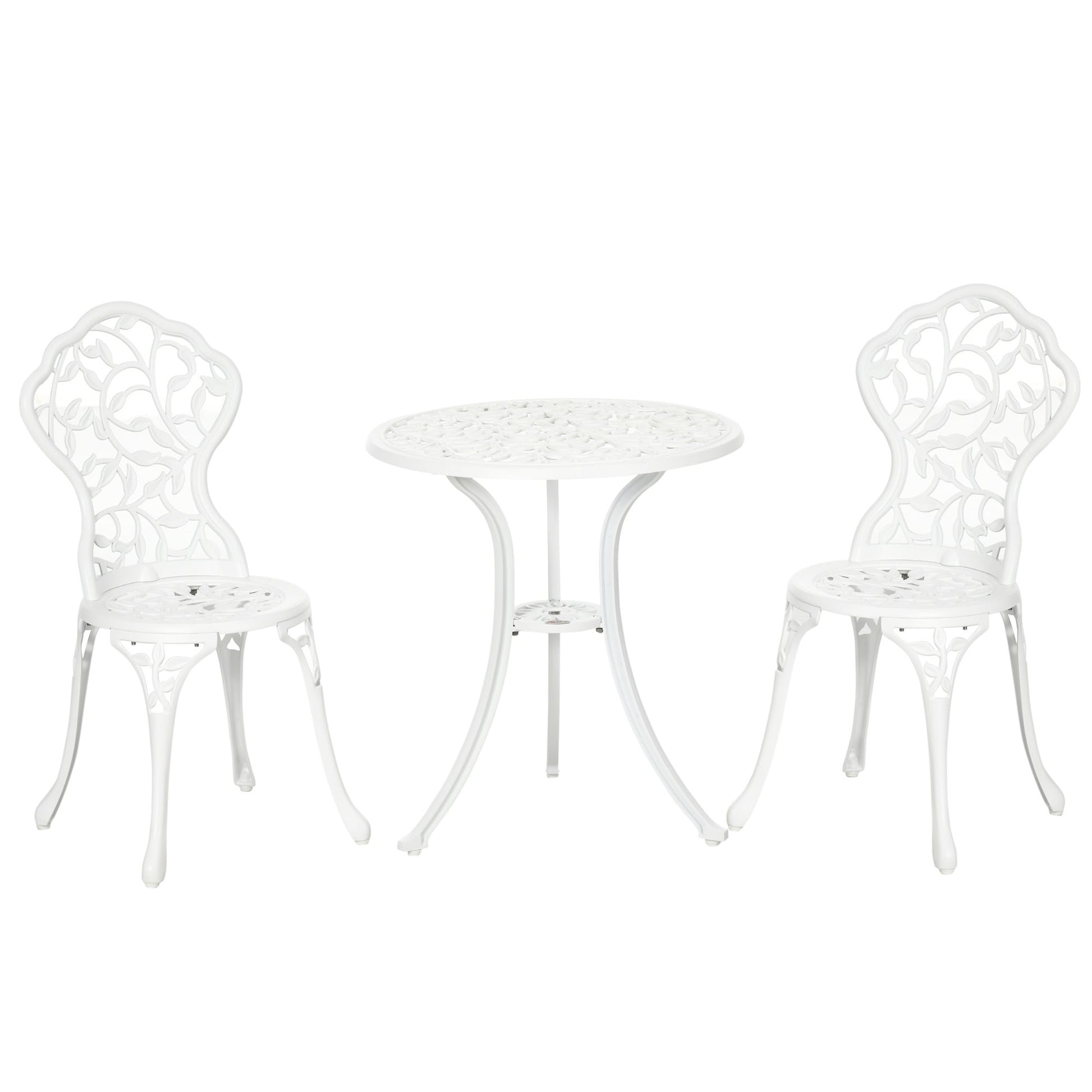 3 Pcs Bistro Set, Garden Dining Table Chairs Antique Outdoor Seat, Aluminium White
