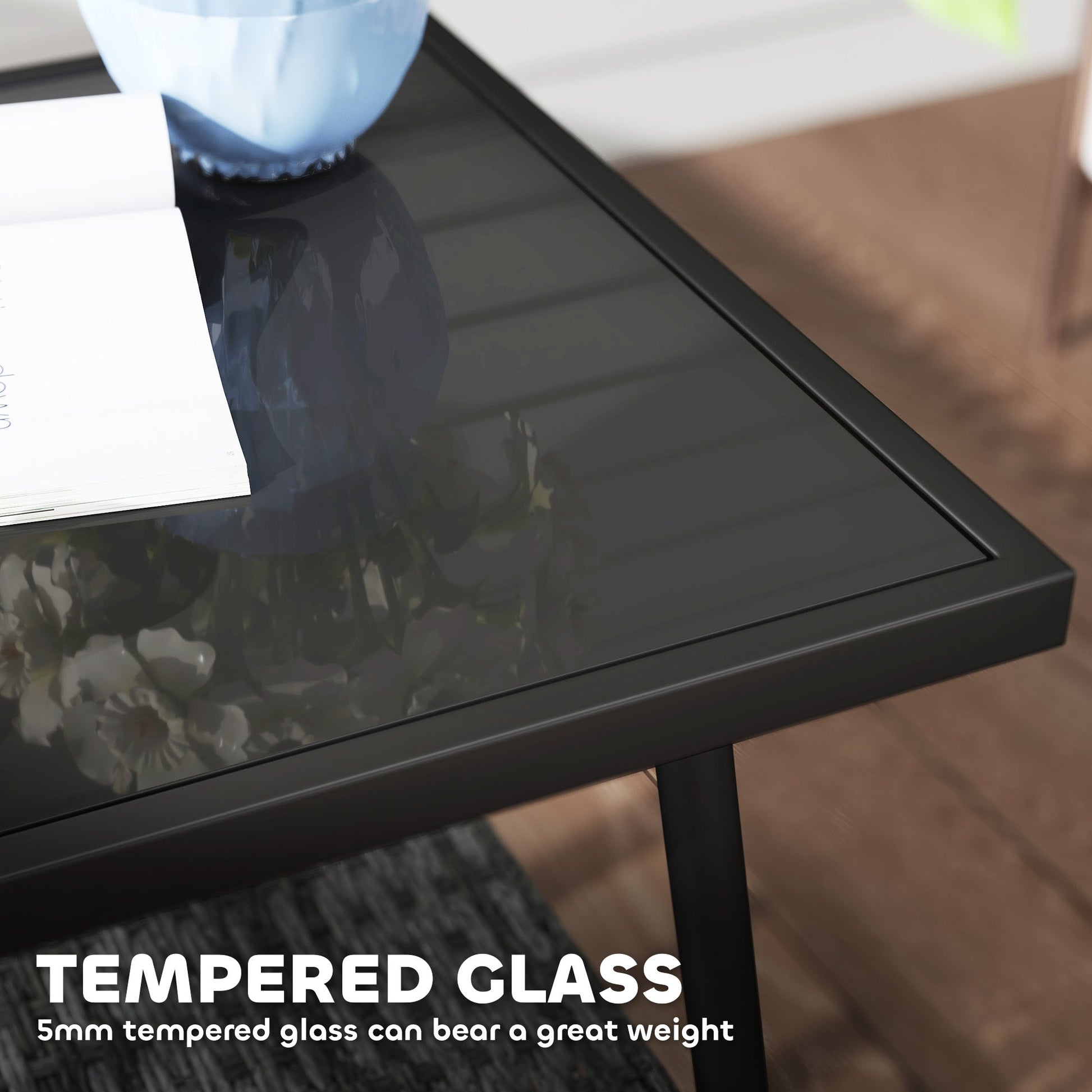 Featuring a spacious tempered glass top and a bottom shelf, this table offers plenty of space for drinks, snacks, and essentials. Its clear, easy-to-clean surface combines style with practicality.