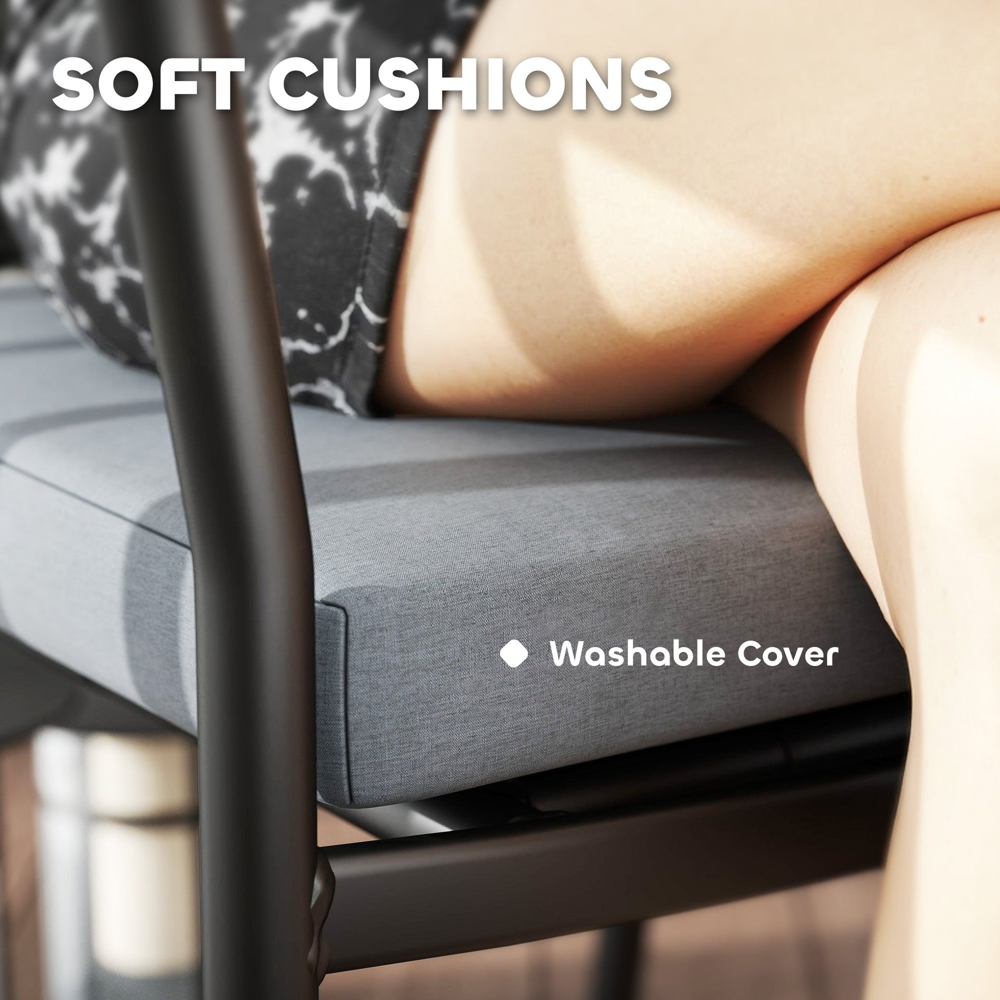 Unwind in style with this outdoor bistro set, featuring seat cushions for a cozy and inviting feel. The removable, washable cushion covers ensure effortless maintenance.