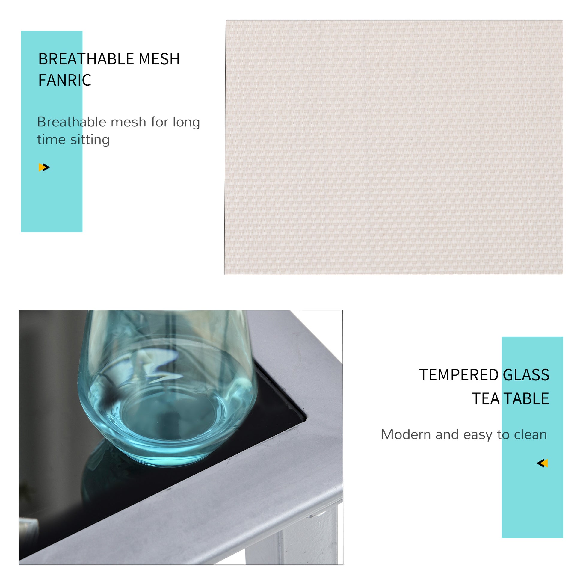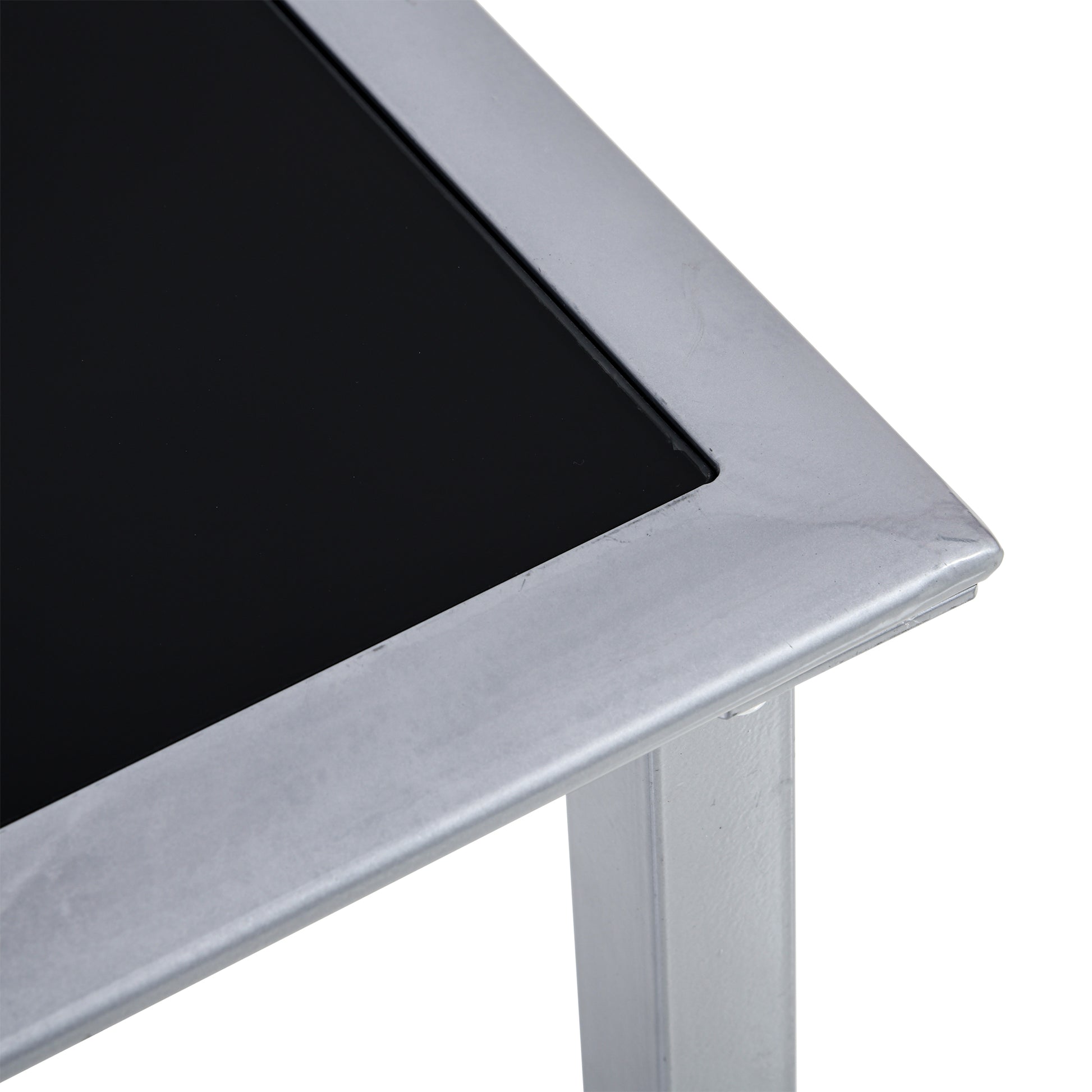 The metal frame offers a solid and tough structure, durable against peeling for an extended lifespan. The table features a tempered glass top, which provides a solid and safe surface.