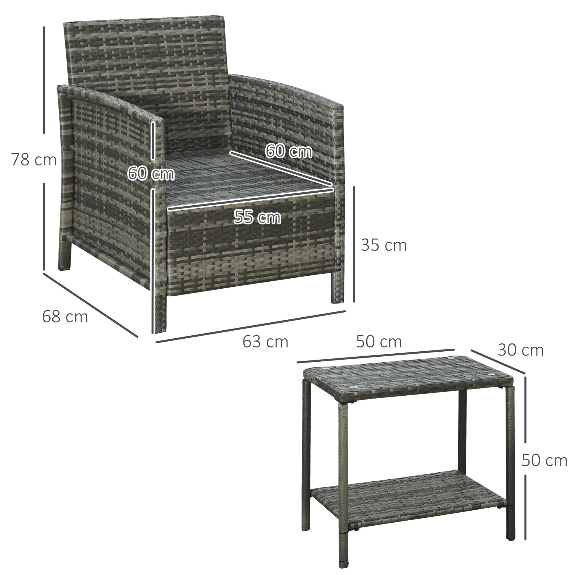 3 Pieces Rattan Bistro Set, Wicker Garden Furniture with 2-Tier Glass Top Table, Grey