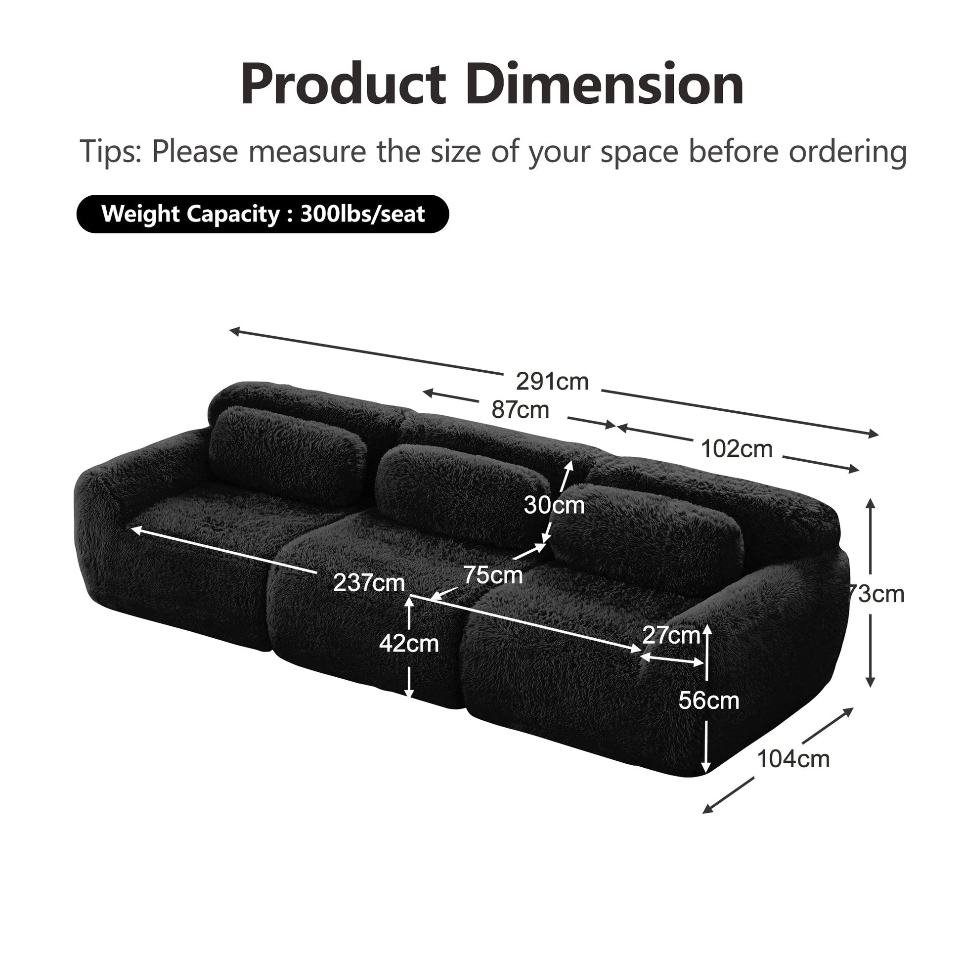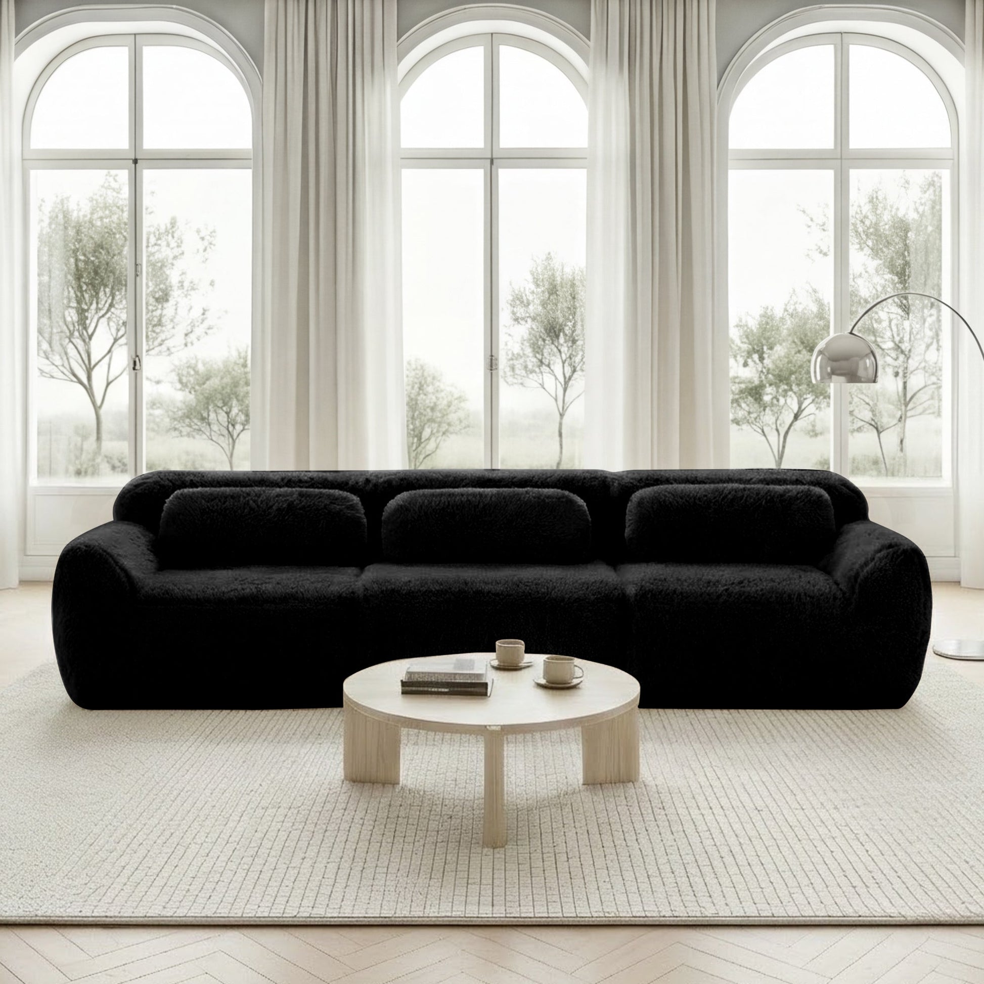 1. Premium Plush Fabric: Enjoy the luxury of our high-quality plush fabric on these boneless Cloud sofas—ultra-soft, cloud-like, and gentle on the skin for everyone, ideal for long-term use. Unlike stiff fabrics, it remains soft and resistant to pilling with regular use. Note: Furniture may be delivered in multiple packages (standard for large items); our support team is always available for tracking or any questions.