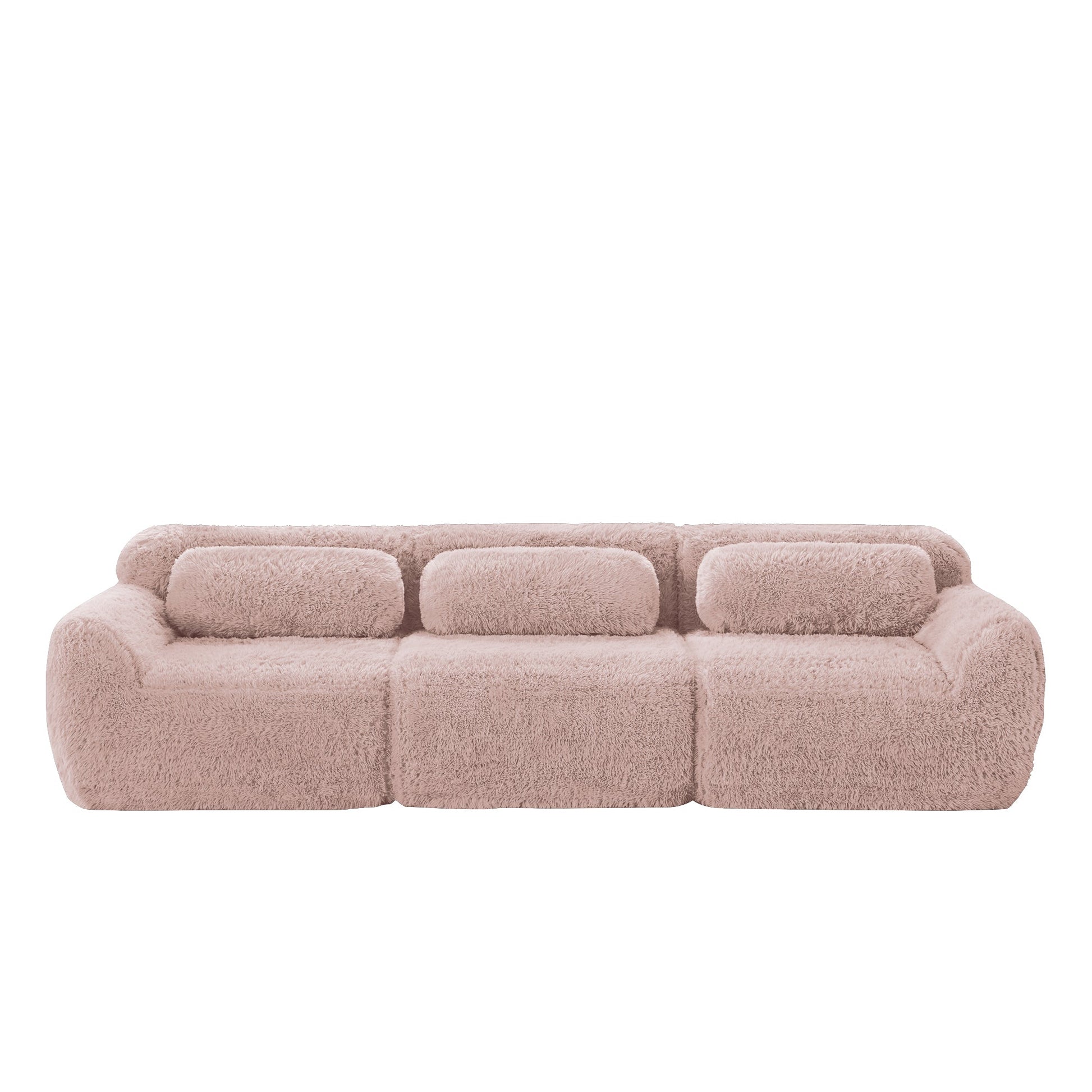 3-seater Deep Sofa Modular Plush Fabric with Cushions - Pink