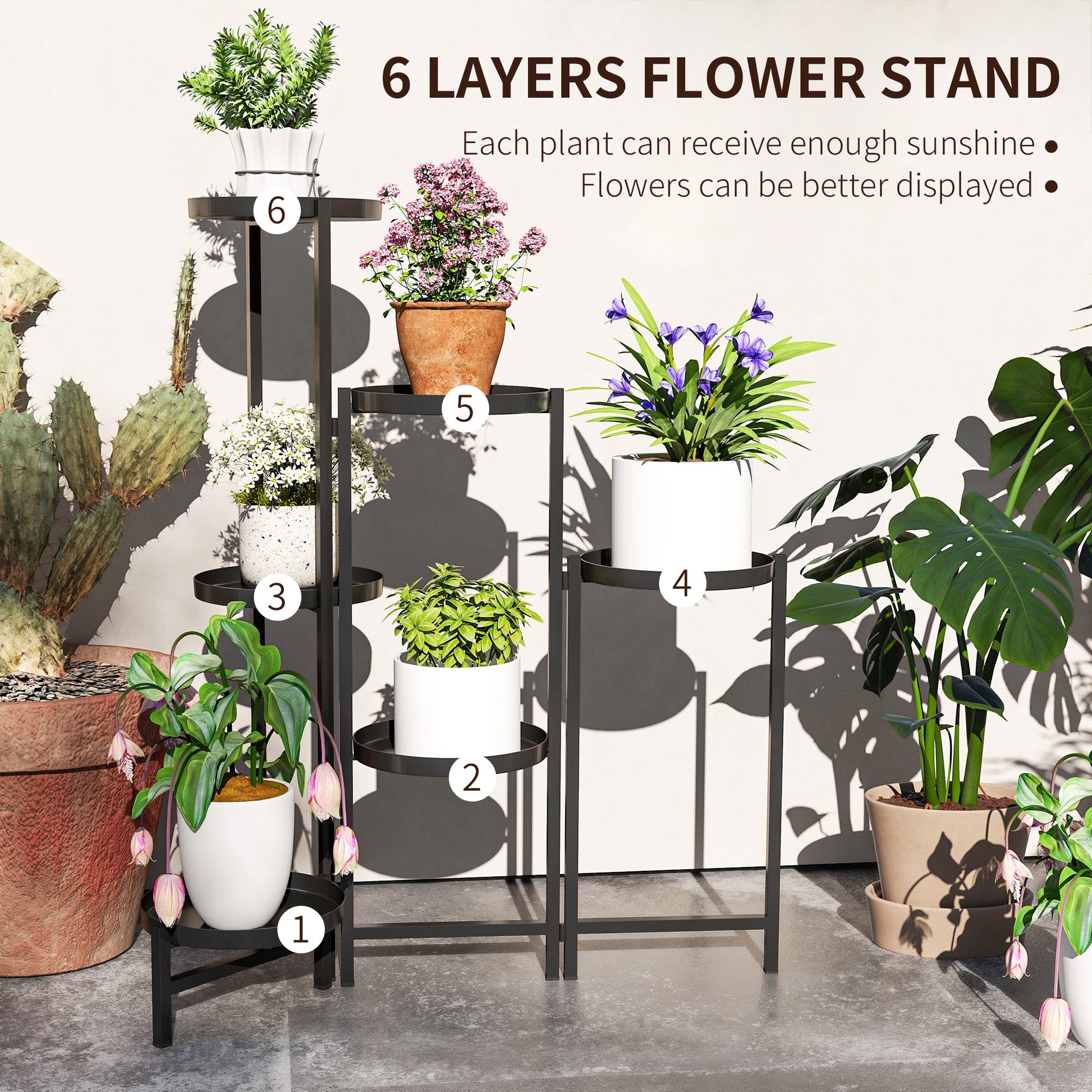 Six-tier design: This plant stand features a high-low layout, creating staggered storage spaces that allow each plant to receive plenty of air and sunlight for healthy growth.