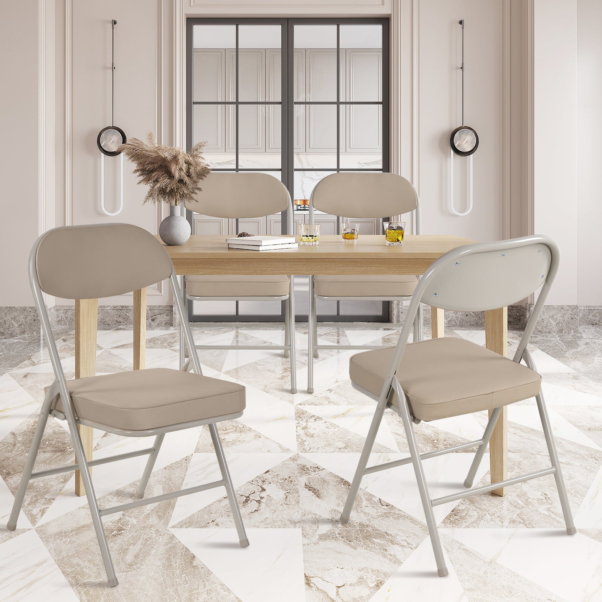 Superior comfort and unparalleled convenience meet in this set of 4 folding chairs, designed for the modern home. They are the perfect, stylish solution for hosting guests, family gatherings, parties, or simply creating extra seating when you need it.