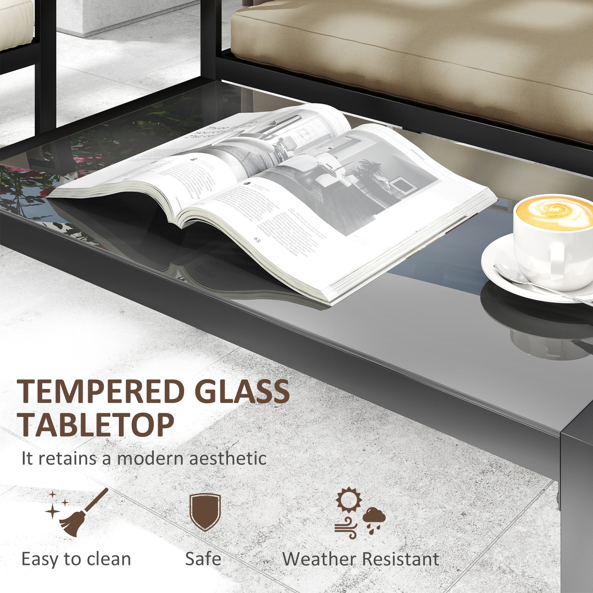 Four-piece set: This collection comes with two armchairs, a two-seater sofa, and a matching table, providing space for you to relax outdoors with company.
