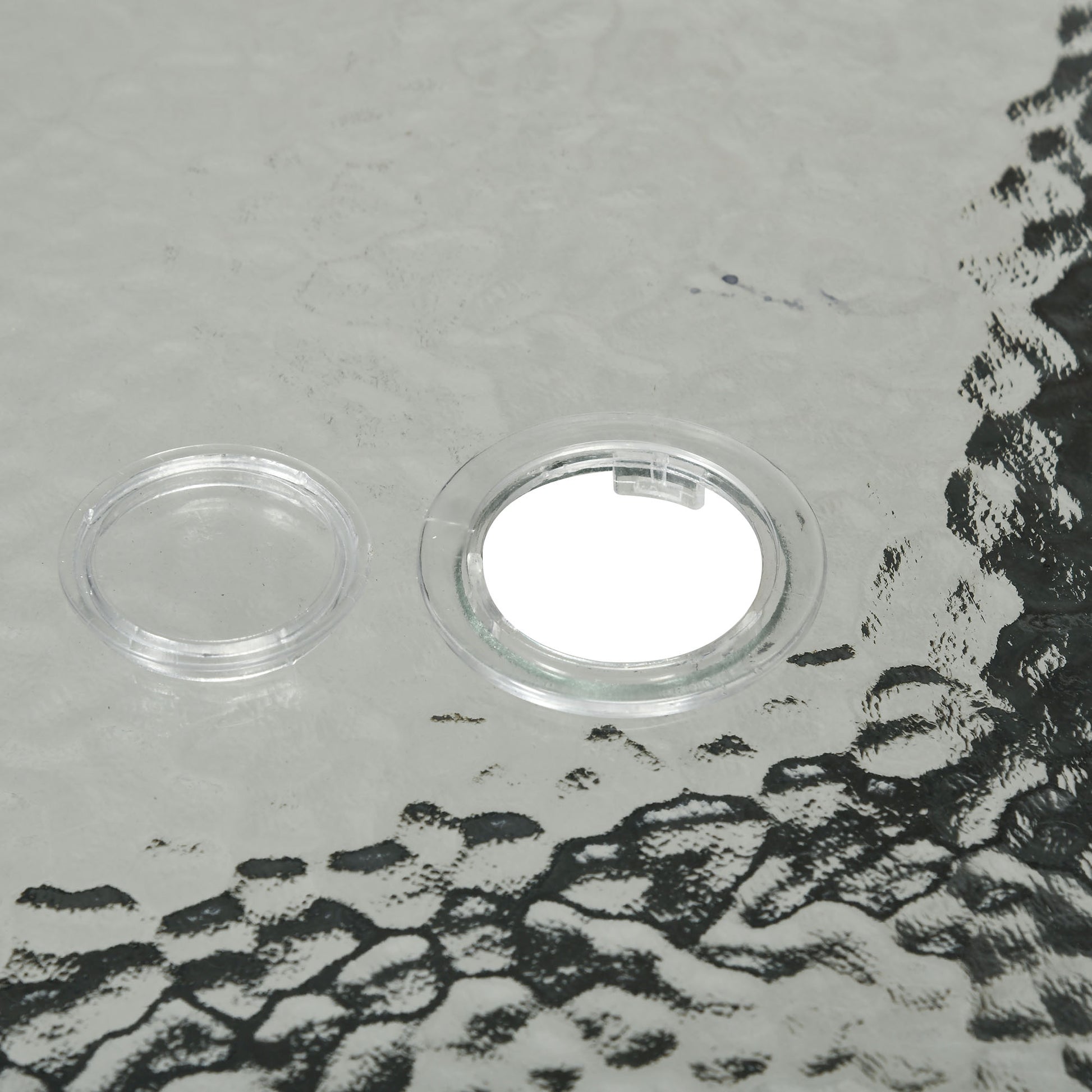 The glass-top table includes an umbrella hole, enabling you to relax with protection in this 4-seater garden furniture set. The hole fits a parasol umbrella with a 38 mm sized pole.