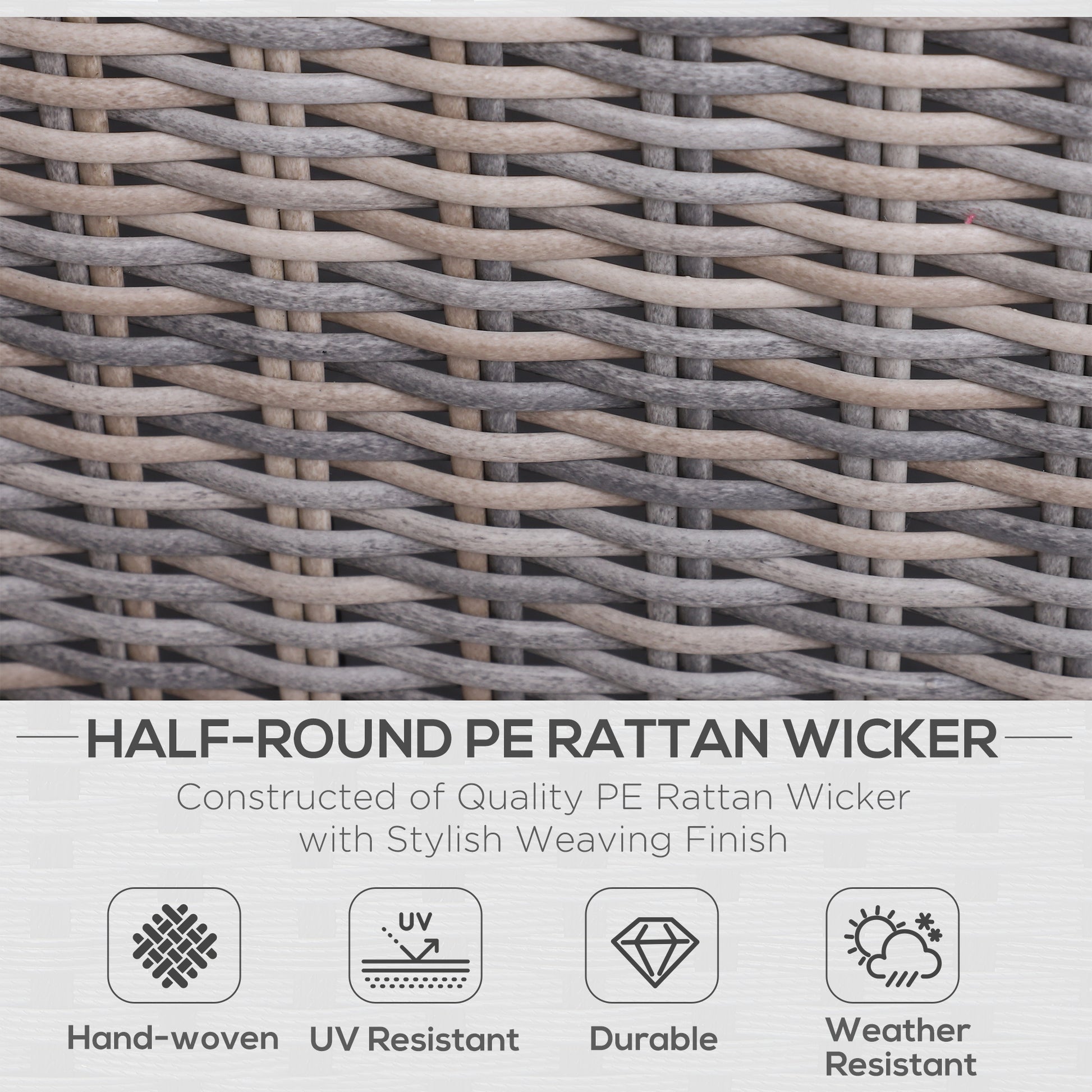 This five-piece garden furniture set includes two corner armchairs, two footstools, and a tall matching coffee table. This rattan furniture is a wonderful addition to gardens, balconies, and other outdoor spaces in your home.