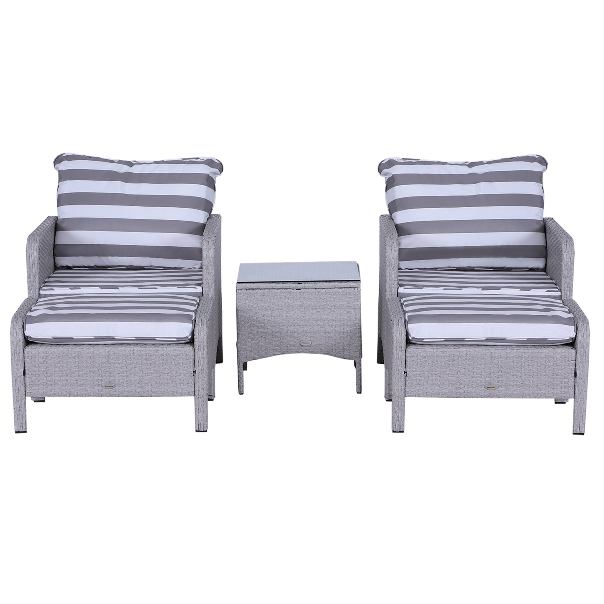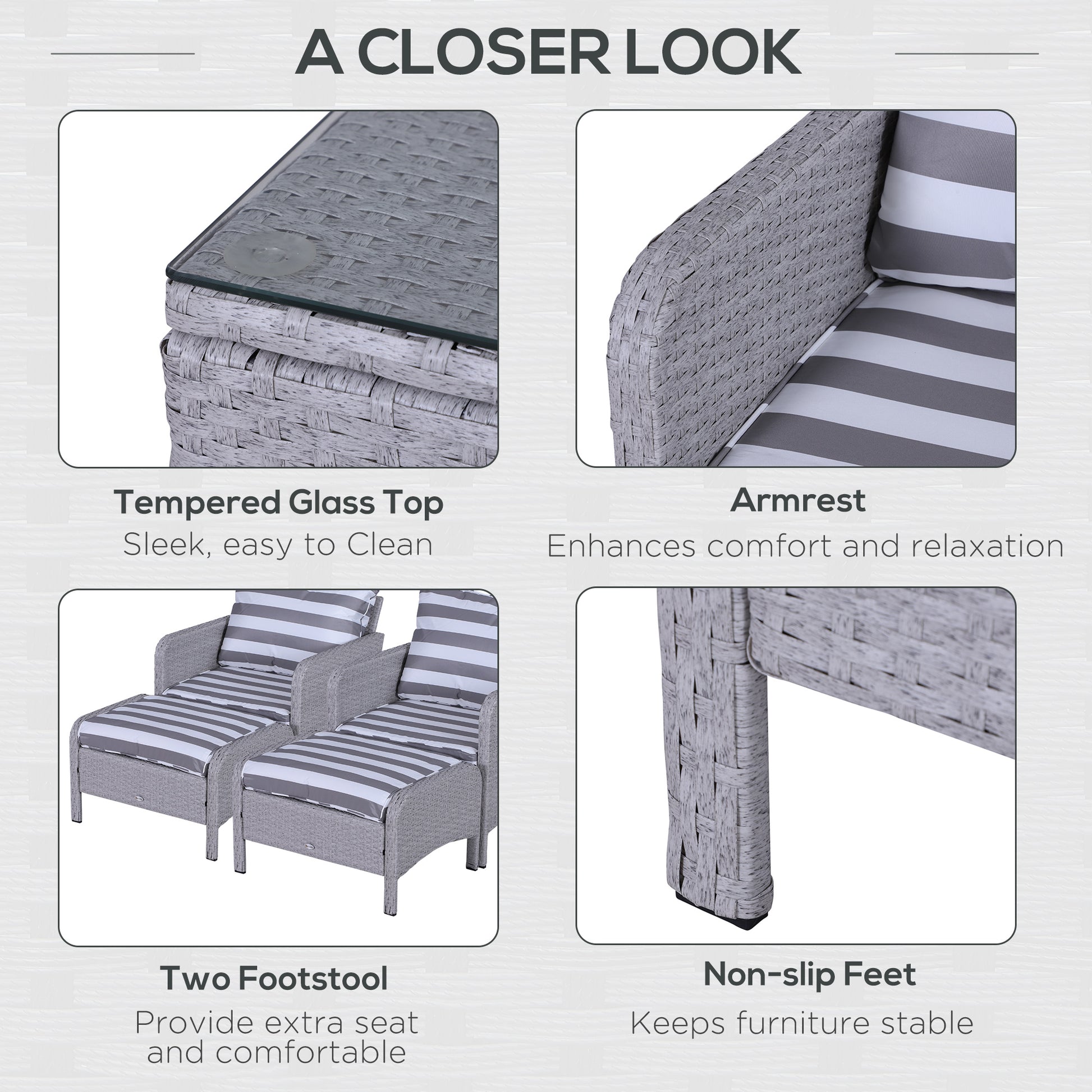 5 Pieces PE Rattan Garden Furniture Set with 10cm Padded Cushions, Glass Top Table, Grey and White Rattan