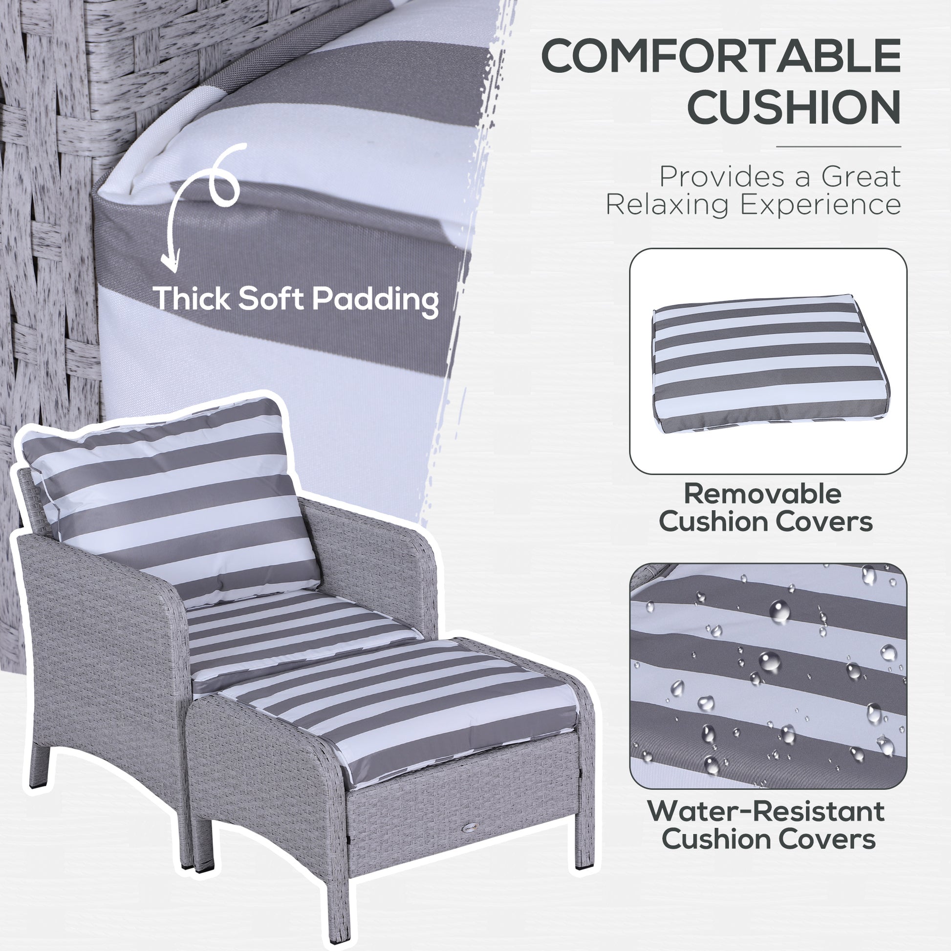 Comfortable cushions: The rattan garden chairs come with 10cm thick, plush padded seat and back cushions, and footstools to ensure hours of relaxation. Cushion covers can be removed and washed for easy cleaning.