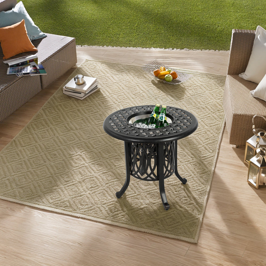Aluminum Outdoor Table with Ice Bucket, Adjustable Foot Pads