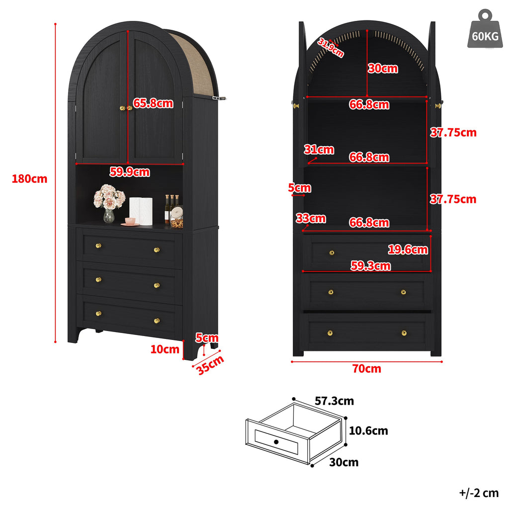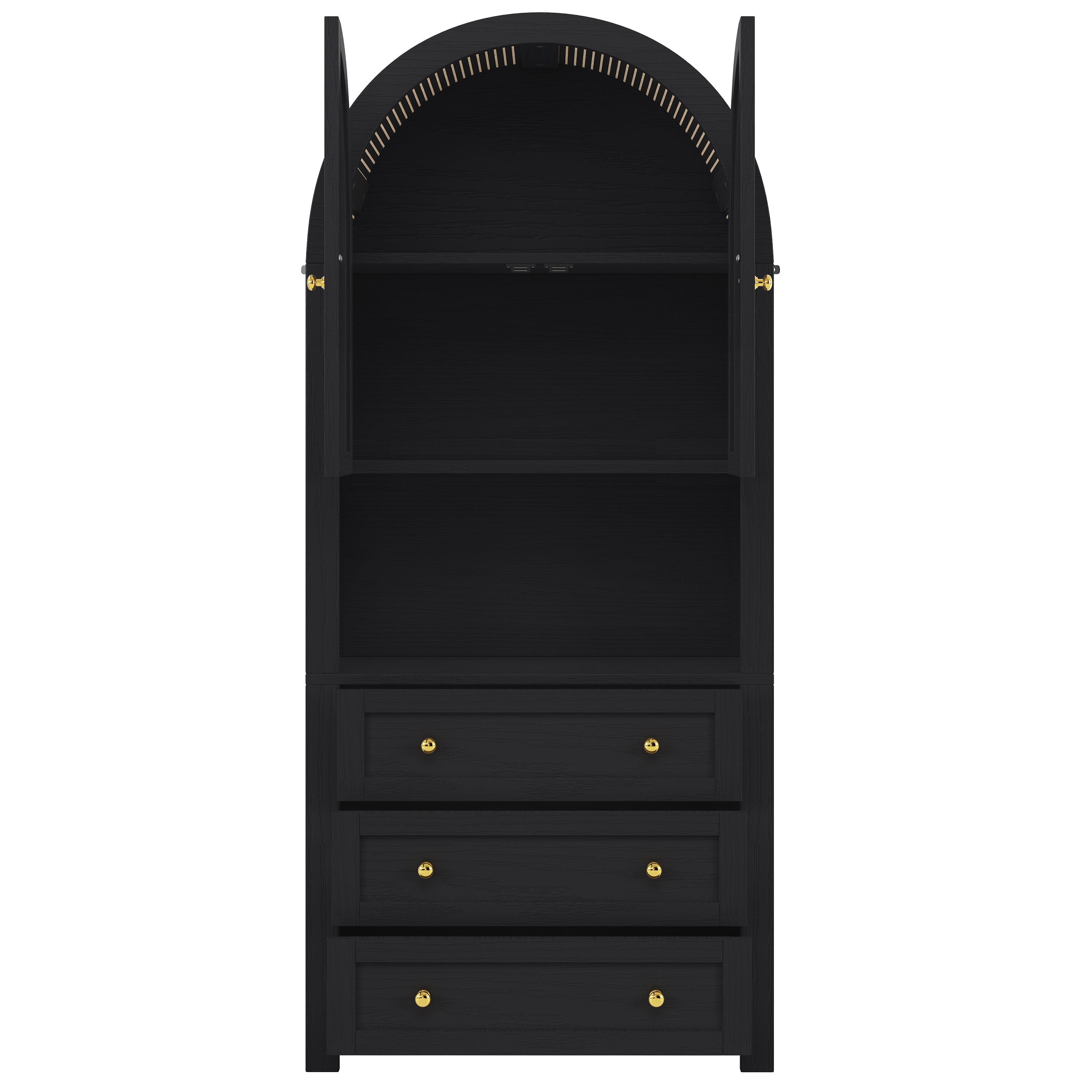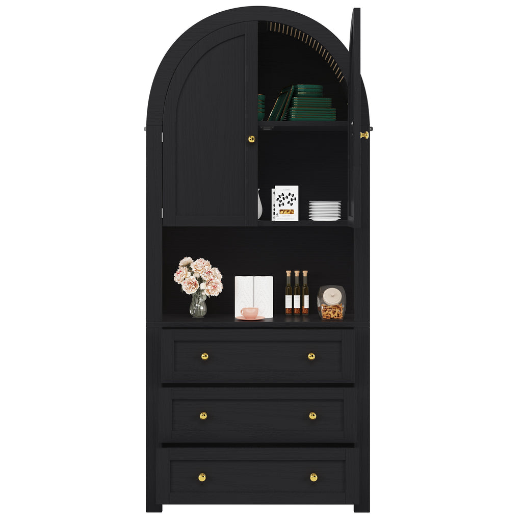 Arched Storage Cabinet, Tall with Drawers & Doors, Black