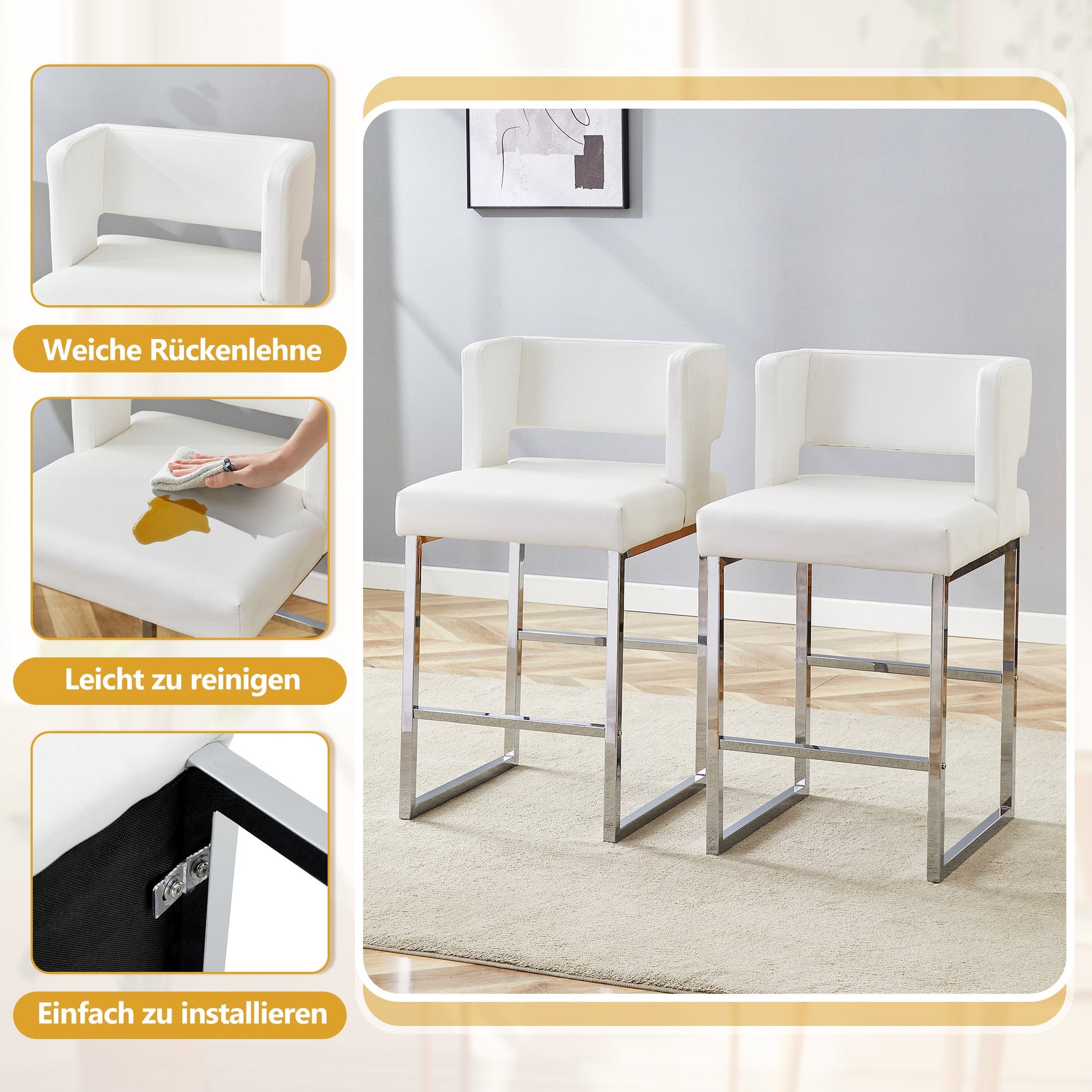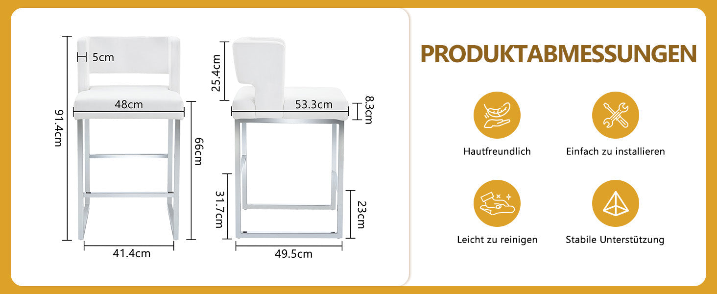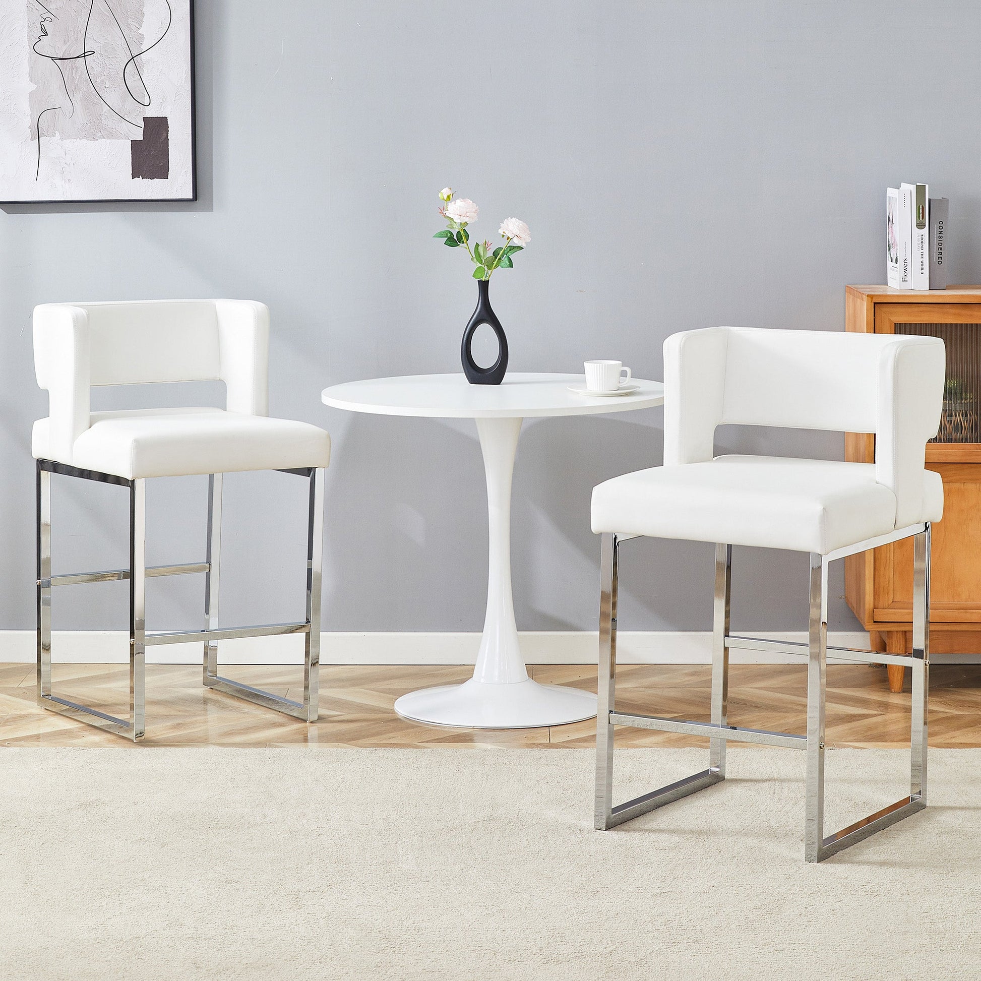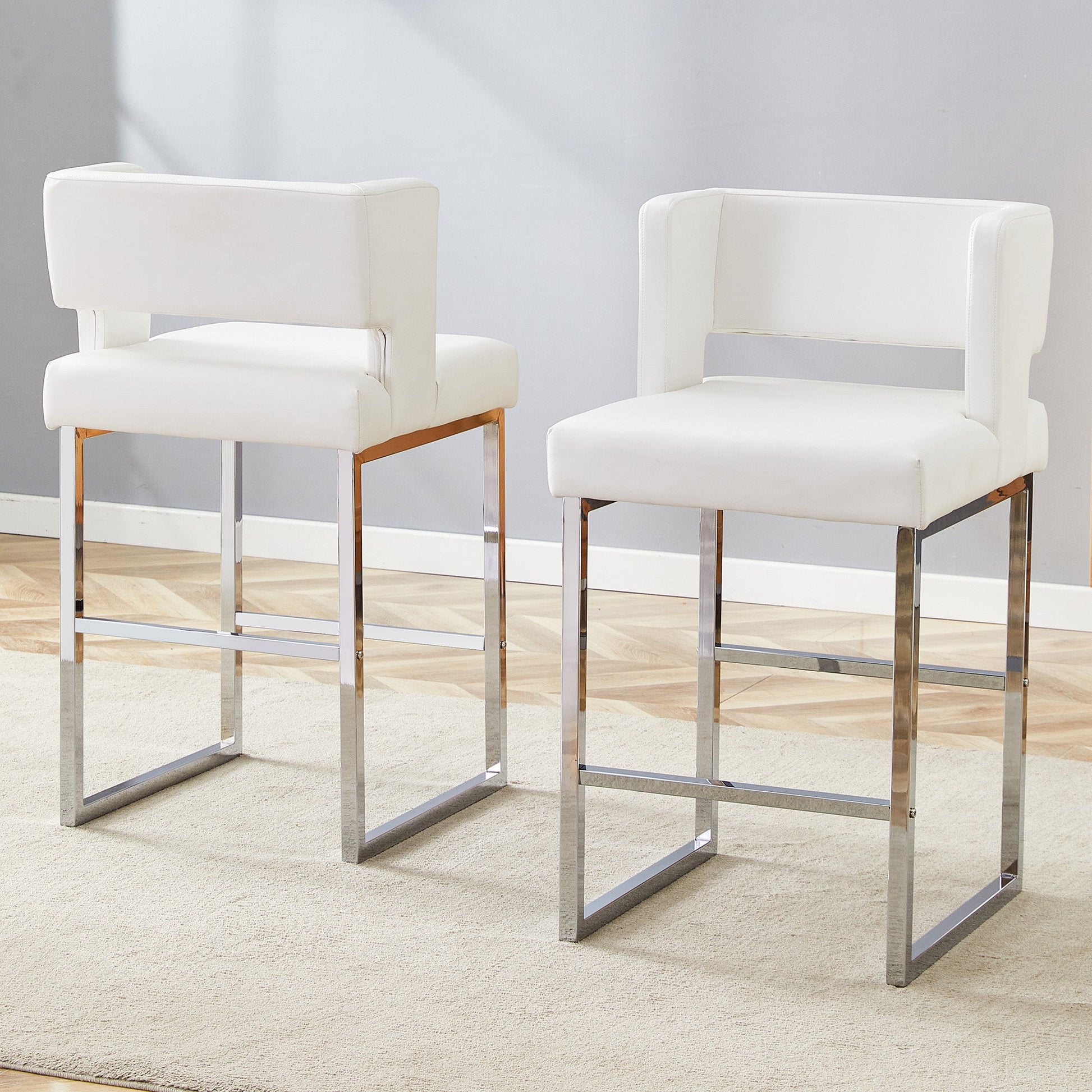 Bar Stools 2-Pack Nordic Style Modern Square Design Silver Metal Legs