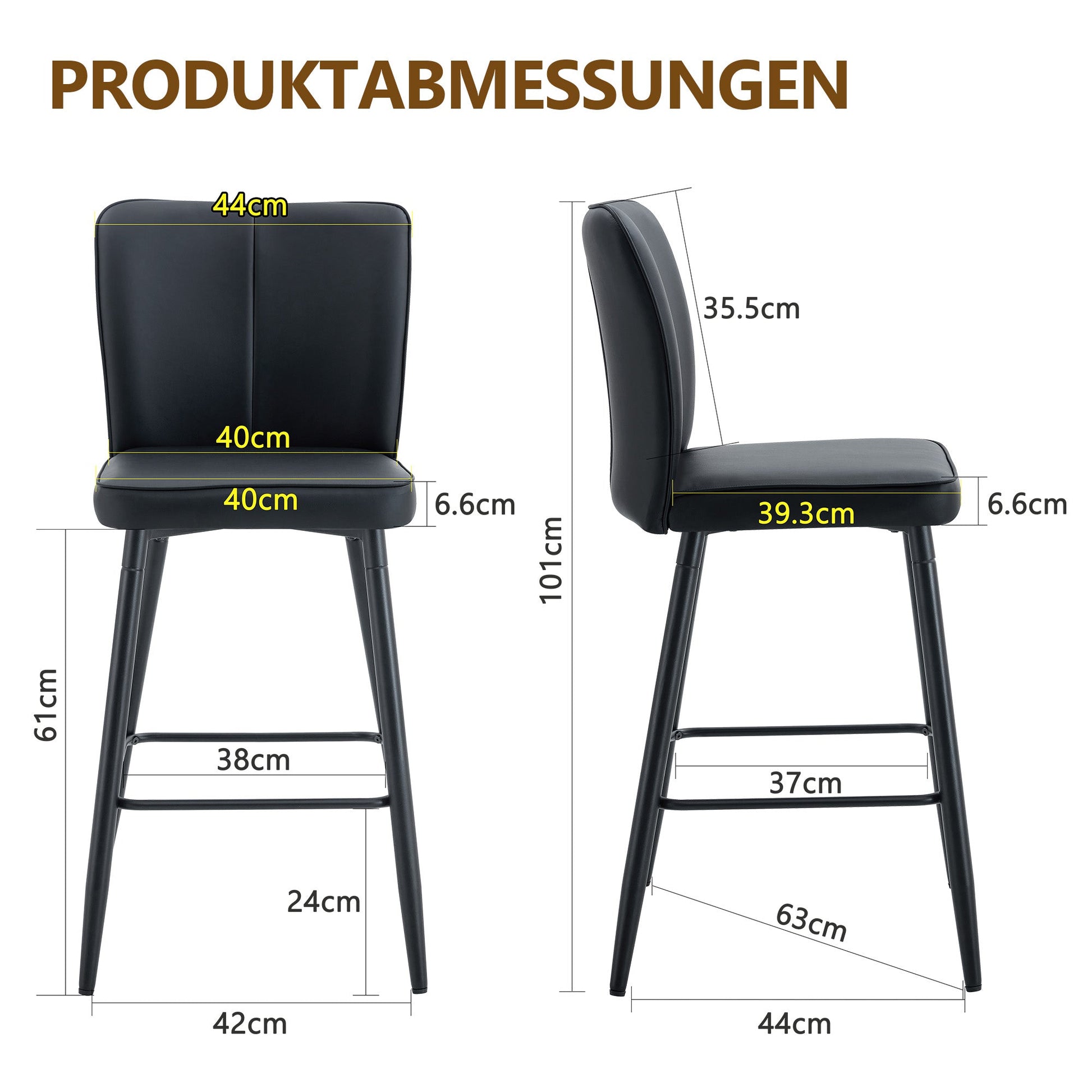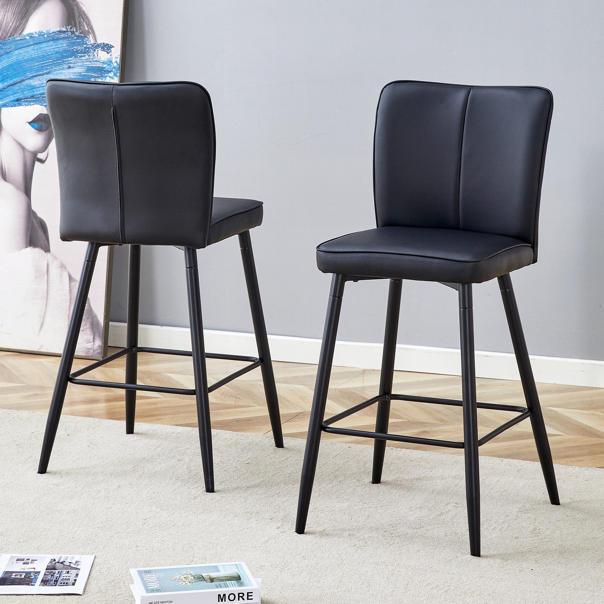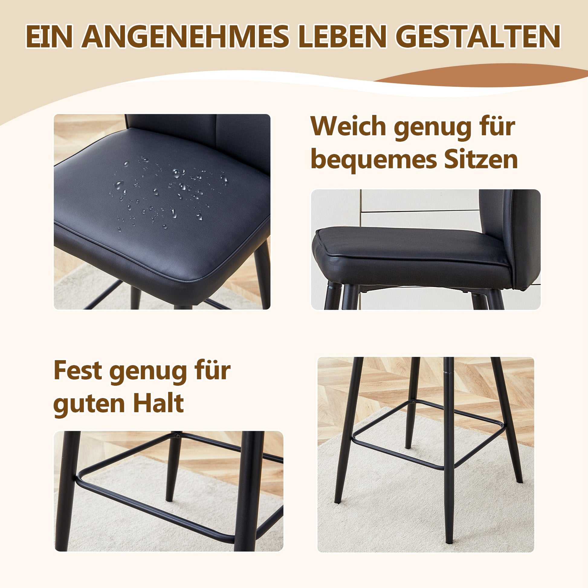 High-Quality and Easy-to-Clean Material: The backrest and seat are made of PU material combined with metal parts. This not only gives it a sophisticated look but also makes cleaning particularly easy. Simply wipe it with a damp cloth and mild detergent to keep the bar stool looking like new.