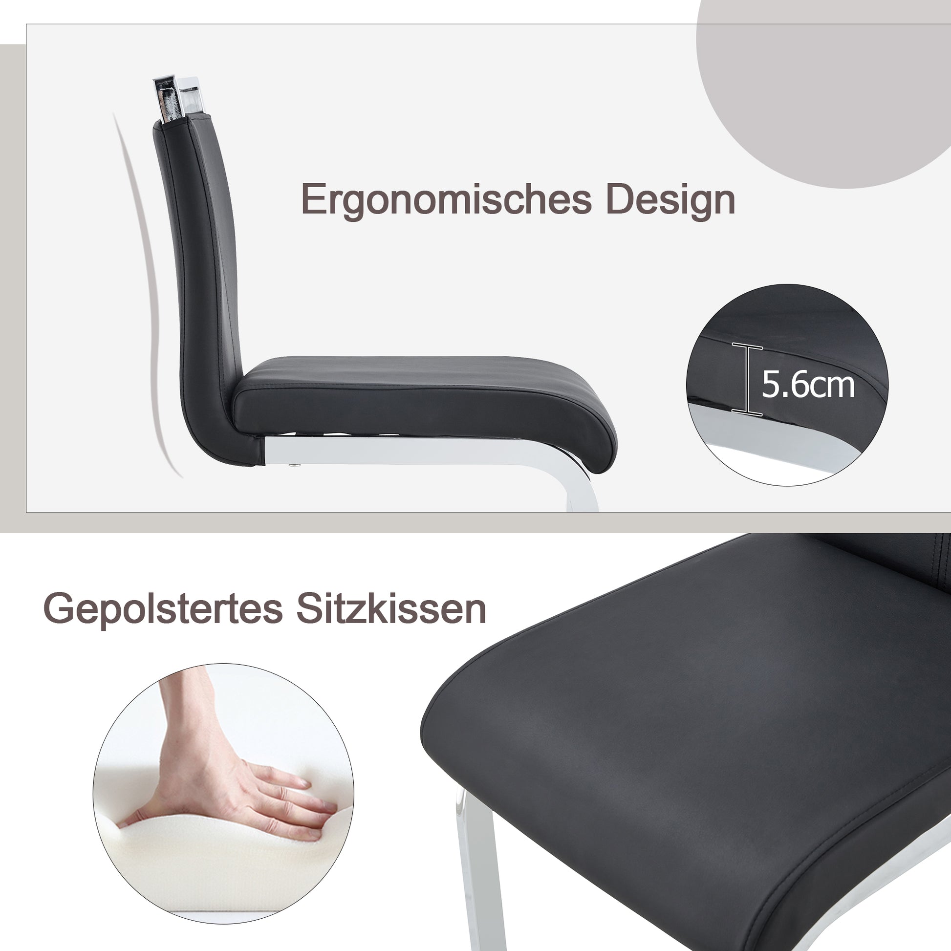 The seat cushion and backrest are made of PU material, offering a comfortable feel. The waterproof PU leather surface can be easily cleaned with a damp cloth and mild detergent, making daily maintenance very convenient.