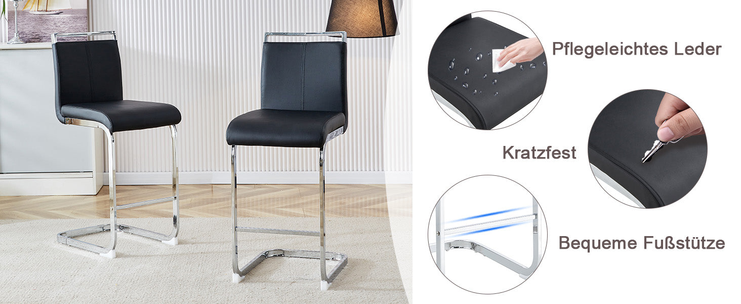 Bar Stools, Nordic Style, Set of 2, Black PU