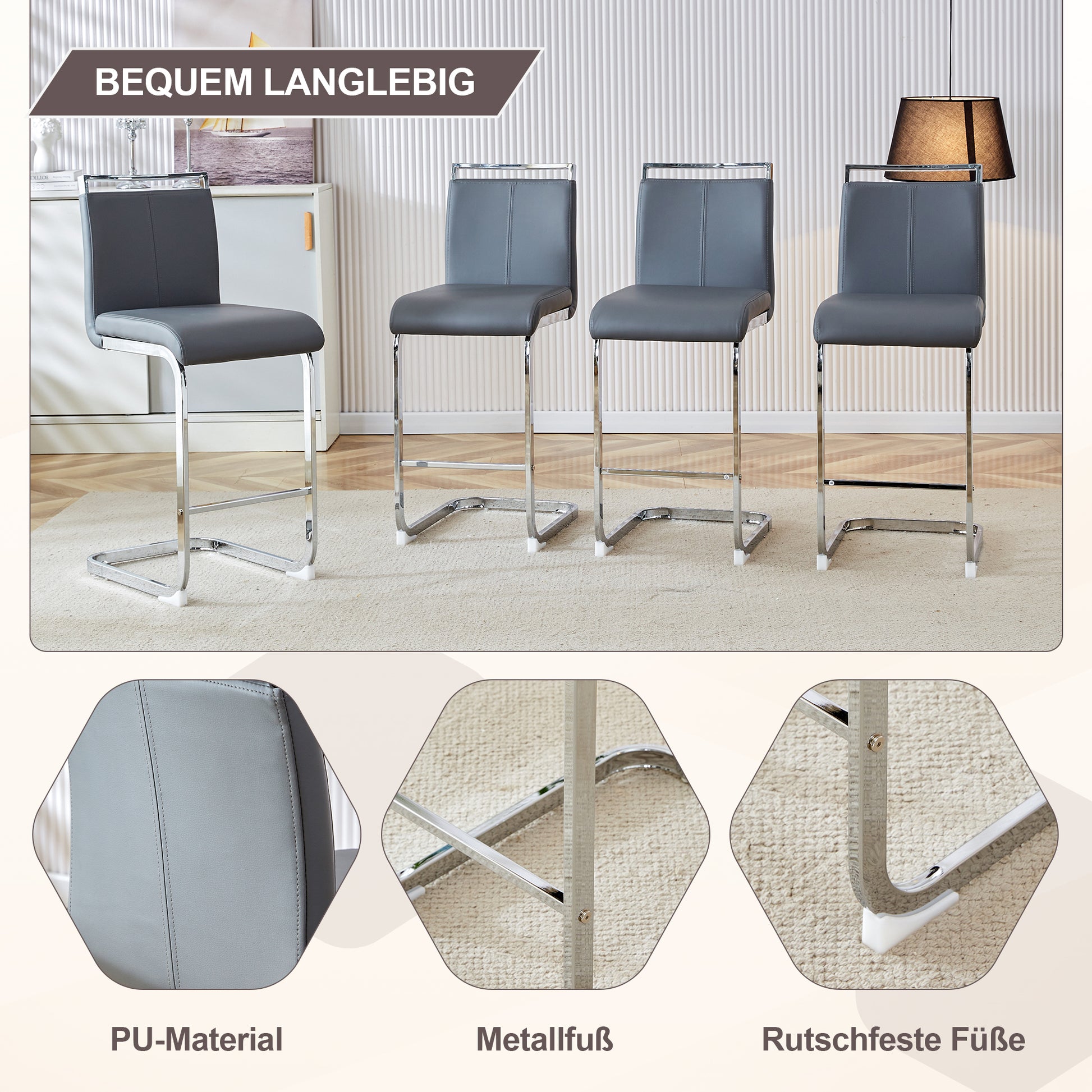 Bar Stools, Nordic Style, Set of 2 (Grey PU)