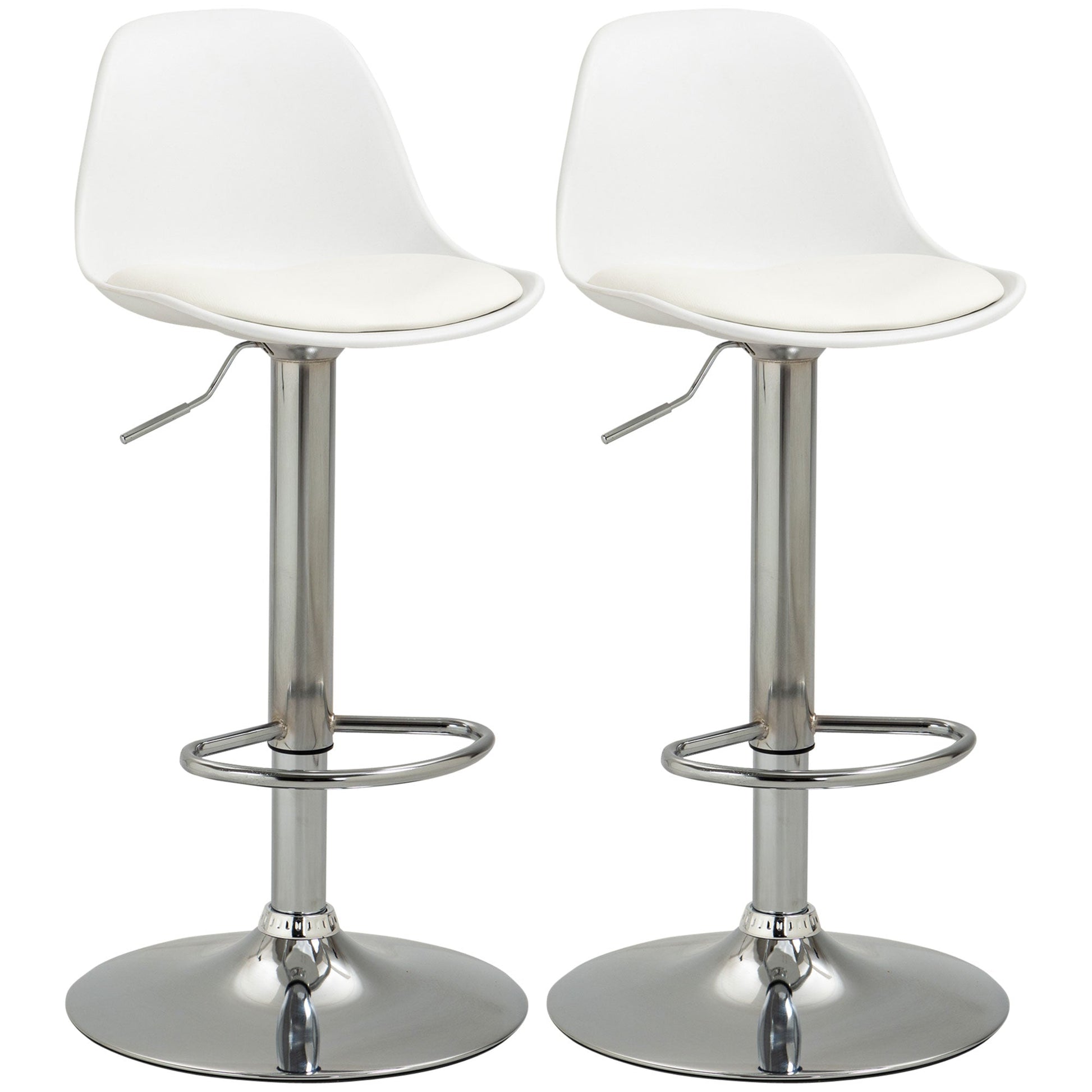 Bar Stools, Set of 2, Swivel, Height-Adjustable, White Faux Leather and Steel