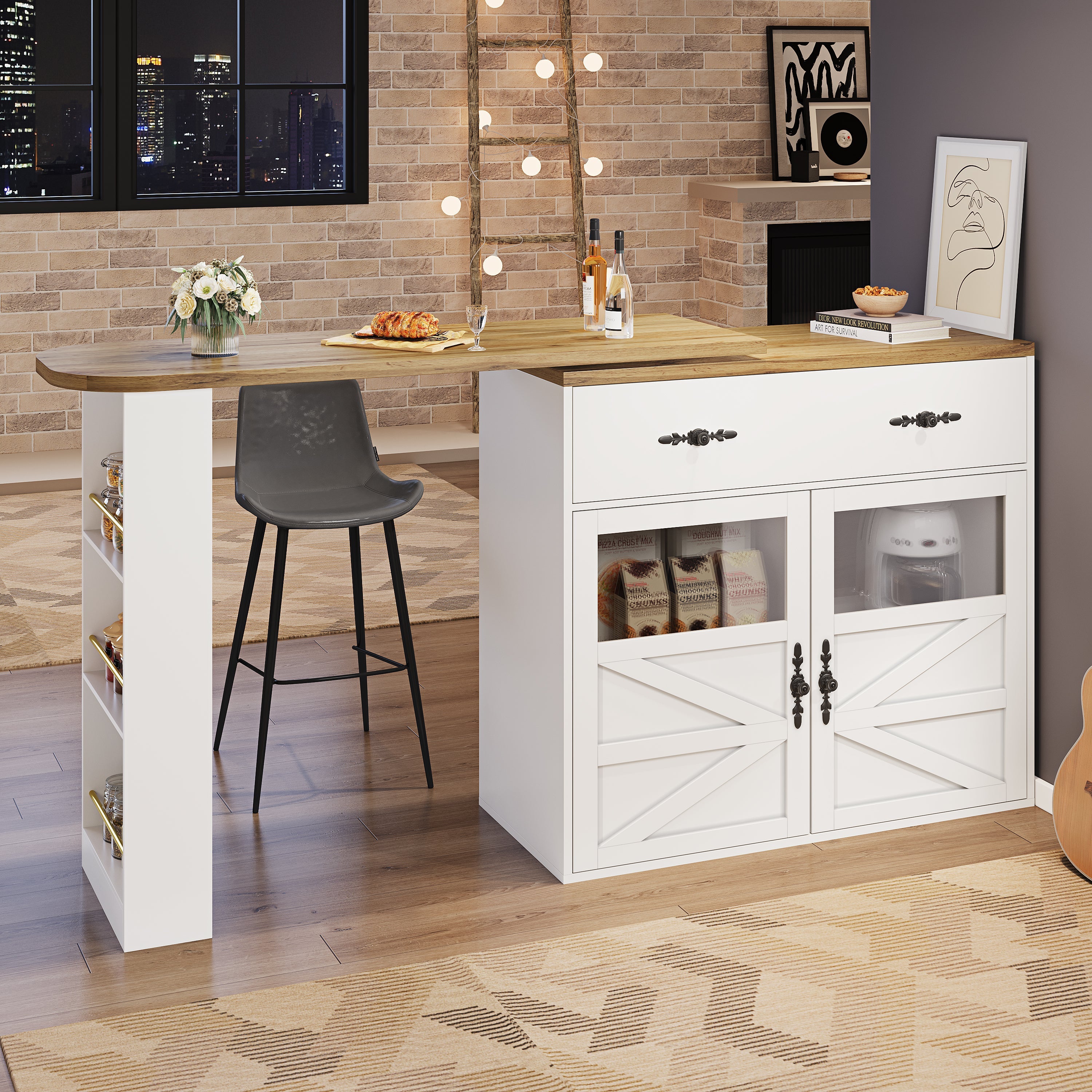 Bar Table, Extendable 360° Rotatable with Storage, White