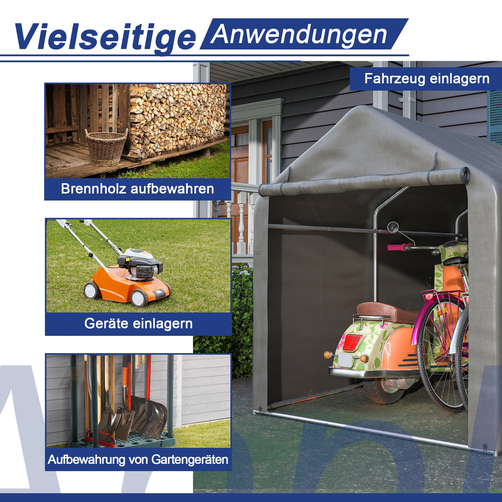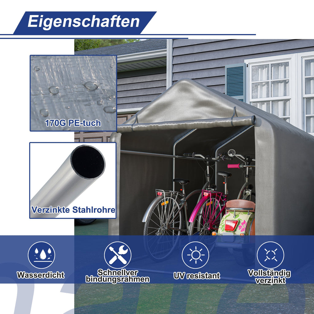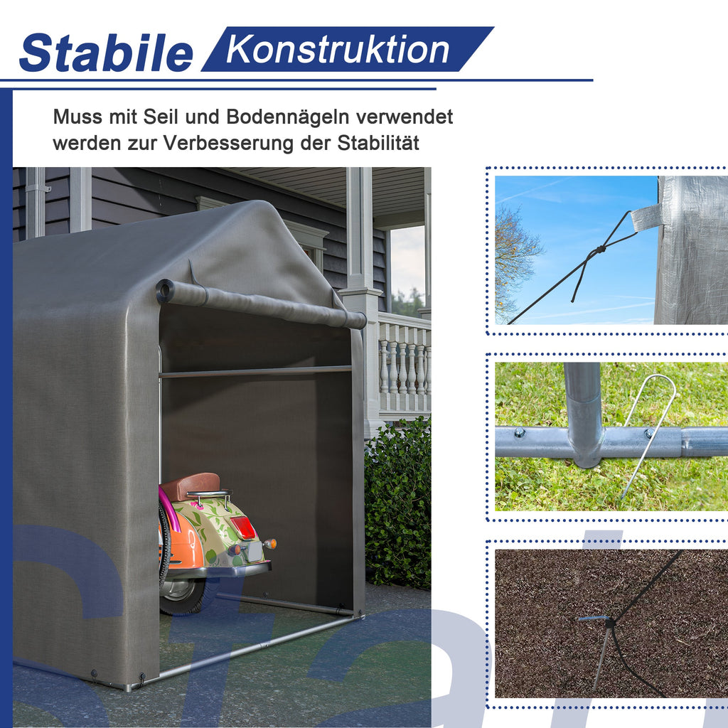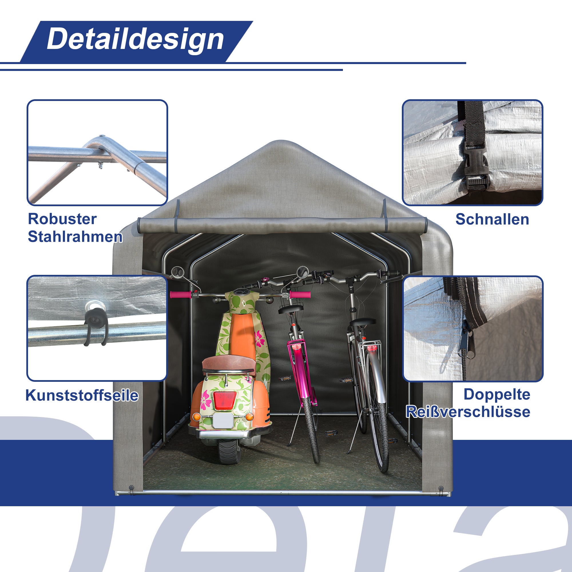 Bicycle Garage / Tool Shed 160x220x165 cm with Roller Shutter - Grey PE Material