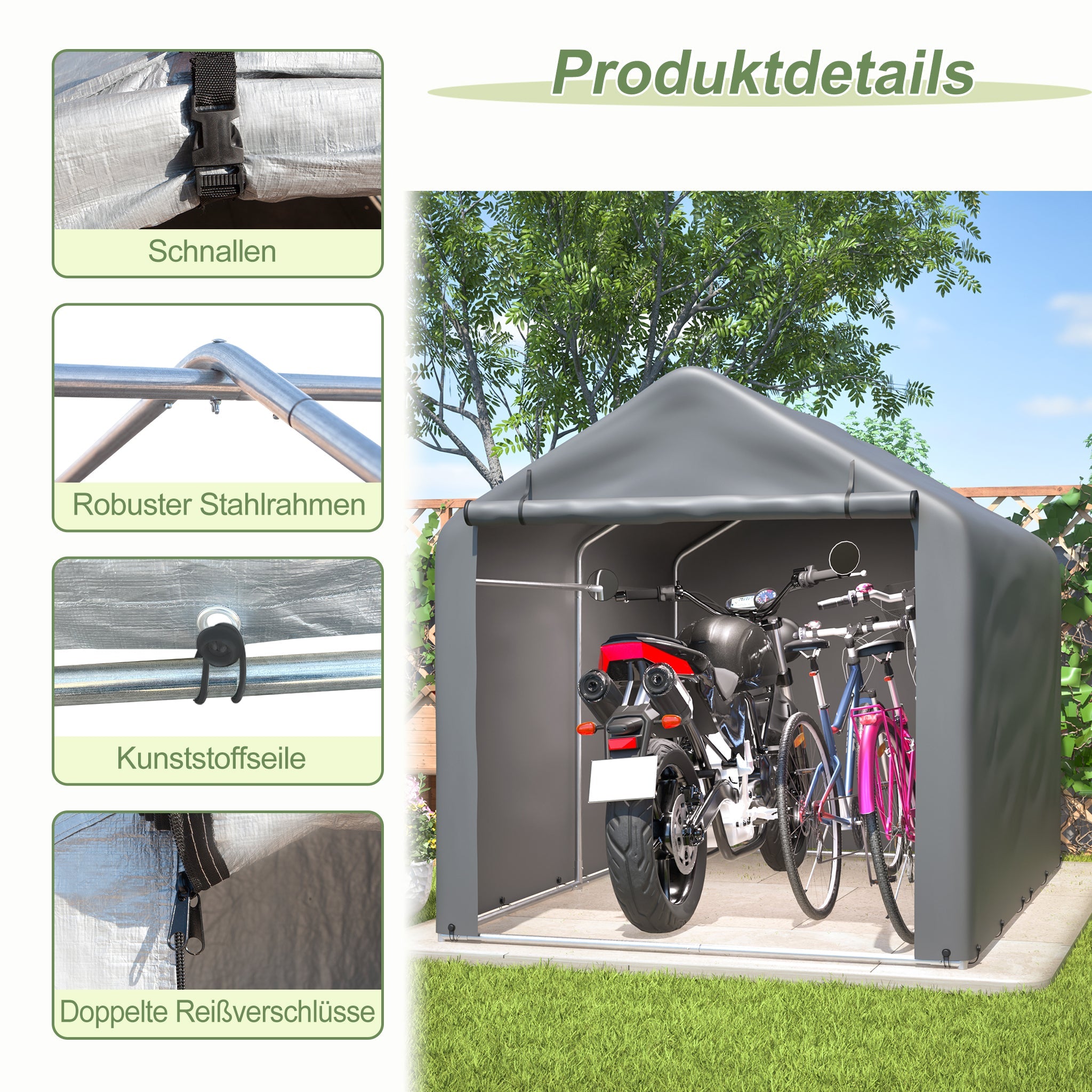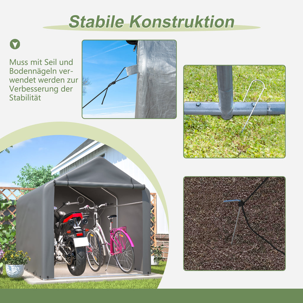 Bicycle Garage / Tool Shed 160x220x165 cm with Roller Shutter, Waterproof PE, Grey