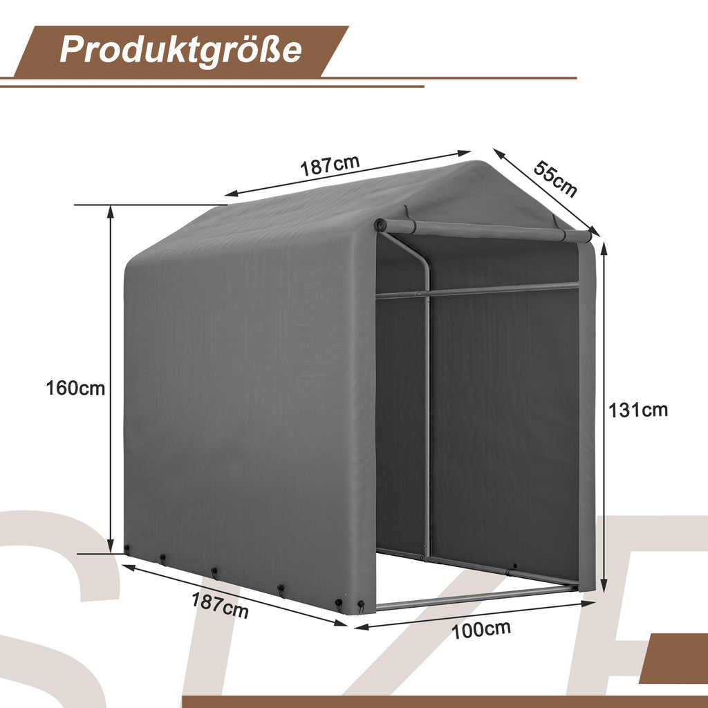 Bicycle Garage Tool Shed, 187x100x160 cm, Dark Gray