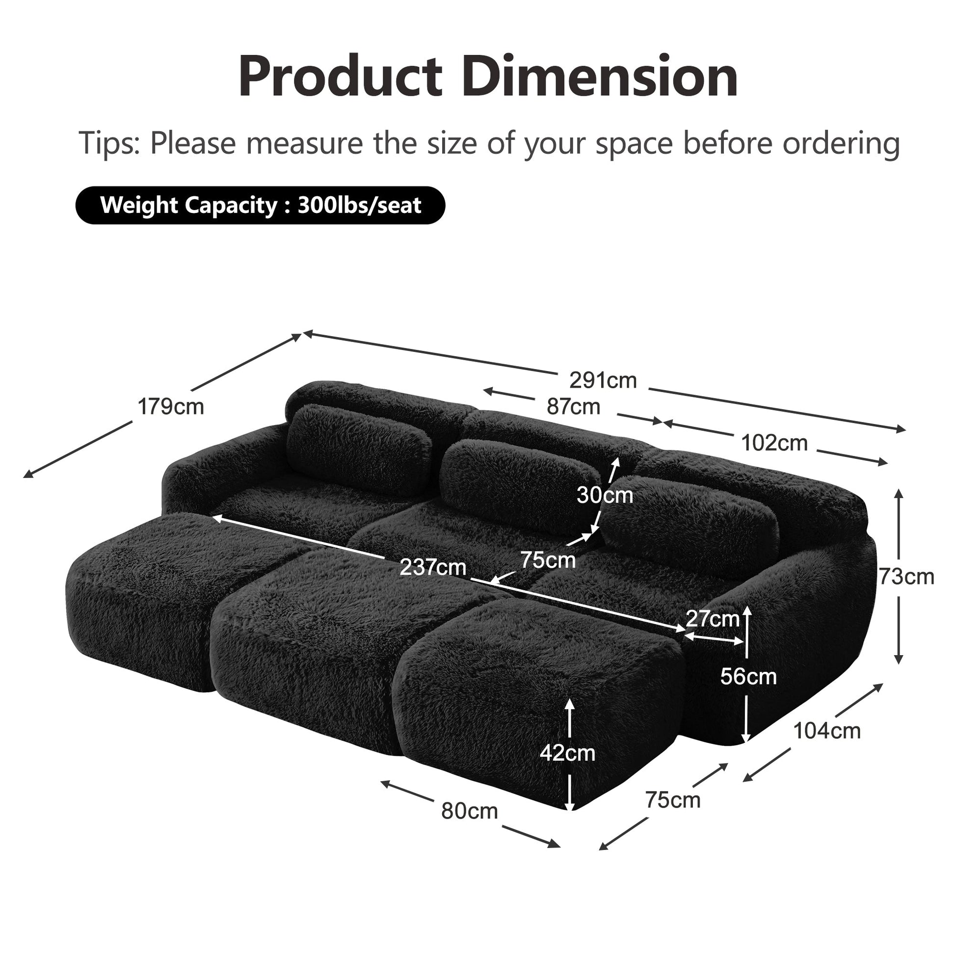 1. Premium Plush Fabric: Enjoy the luxury of our high-quality plush fabric on these boneless Cloud sofas—ultra-soft, cloud-like, and gentle on the skin for everyone, ideal for long-term use. Unlike stiff fabrics, it remains soft and resistant to pilling with regular use. Note: Furniture may be delivered in multiple packages (standard for large items); our support team is always available for tracking or any questions.