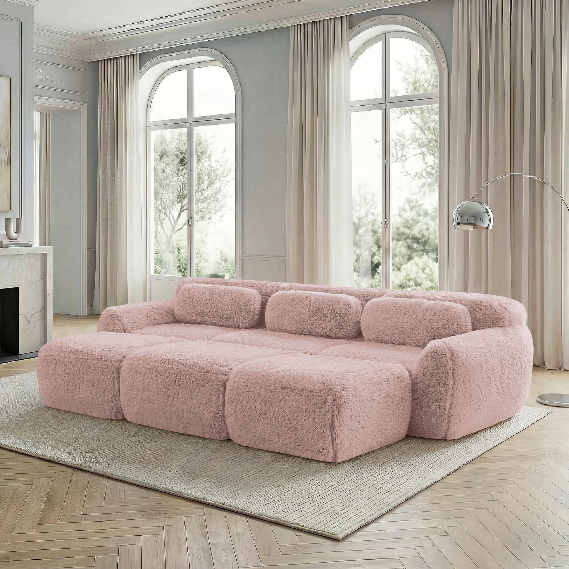 1. Premium Plush Fabric: Enjoy the luxury of our high-quality plush fabric on these boneless Cloud sofas—ultra-soft, cloud-like, and gentle on the skin for everyone, ideal for long-term use. Unlike stiff fabrics, it remains soft and resistant to pilling with regular use. Note: Furniture may be delivered in multiple packages (standard for large items); our support team is always available for tracking or any questions.
