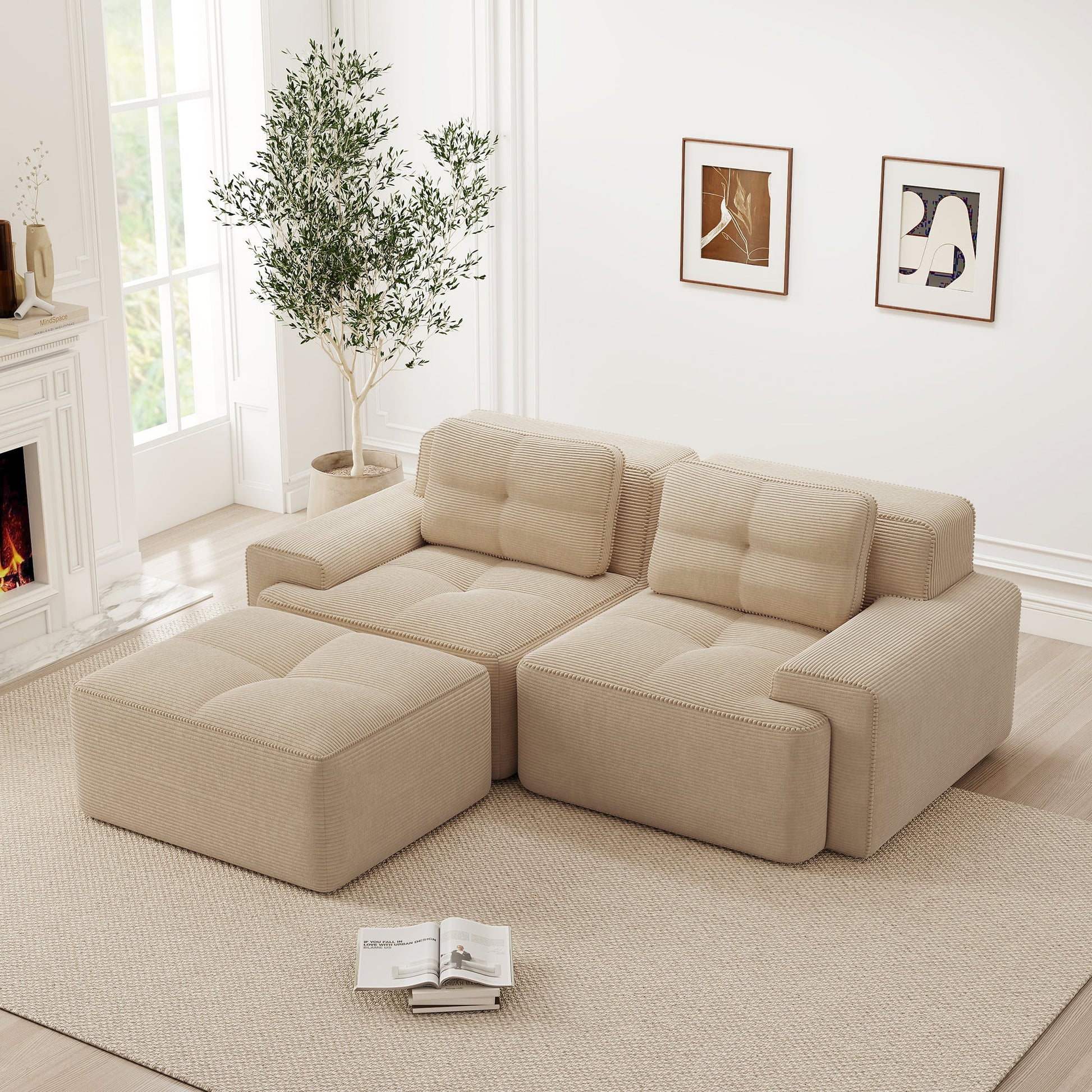 【Soft & Pet-Friendly Corduroy Fabric】Enjoy our corduroy sofa, wrapped in velvety-soft, breathable fabric that is both luxurious and durable. This modular sofa easily withstands pet scratches—with scratch-resistant, easy-to-clean material for complete peace of mind. Finished with pearl-like piping, it's a stylish yet practical sofa for the living room.