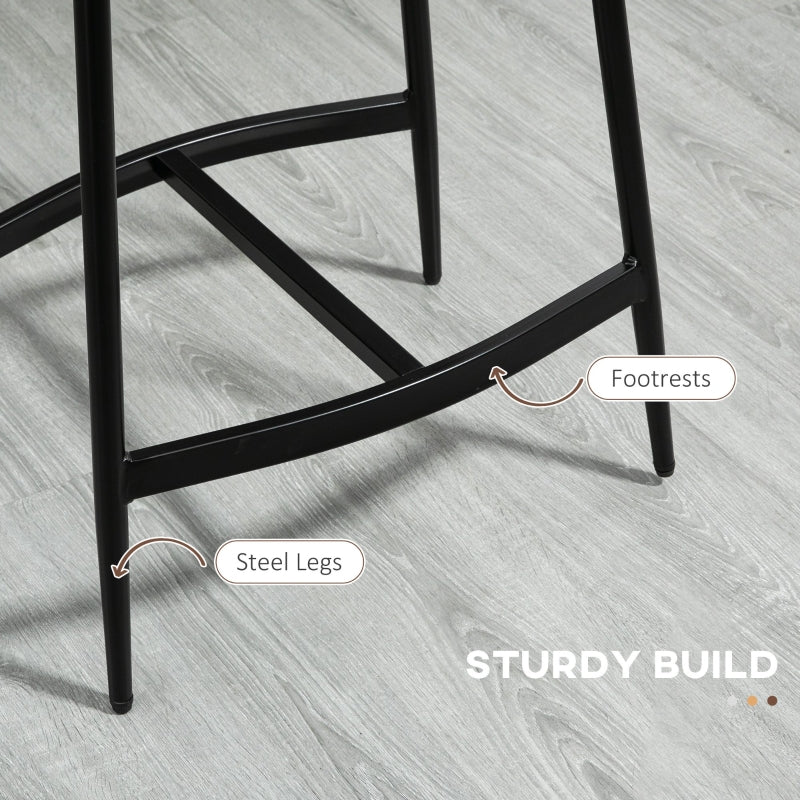 Breakfast Bar Stools Set of 2, Industrial Curved Seat Steel Frame, Brown Microfibre