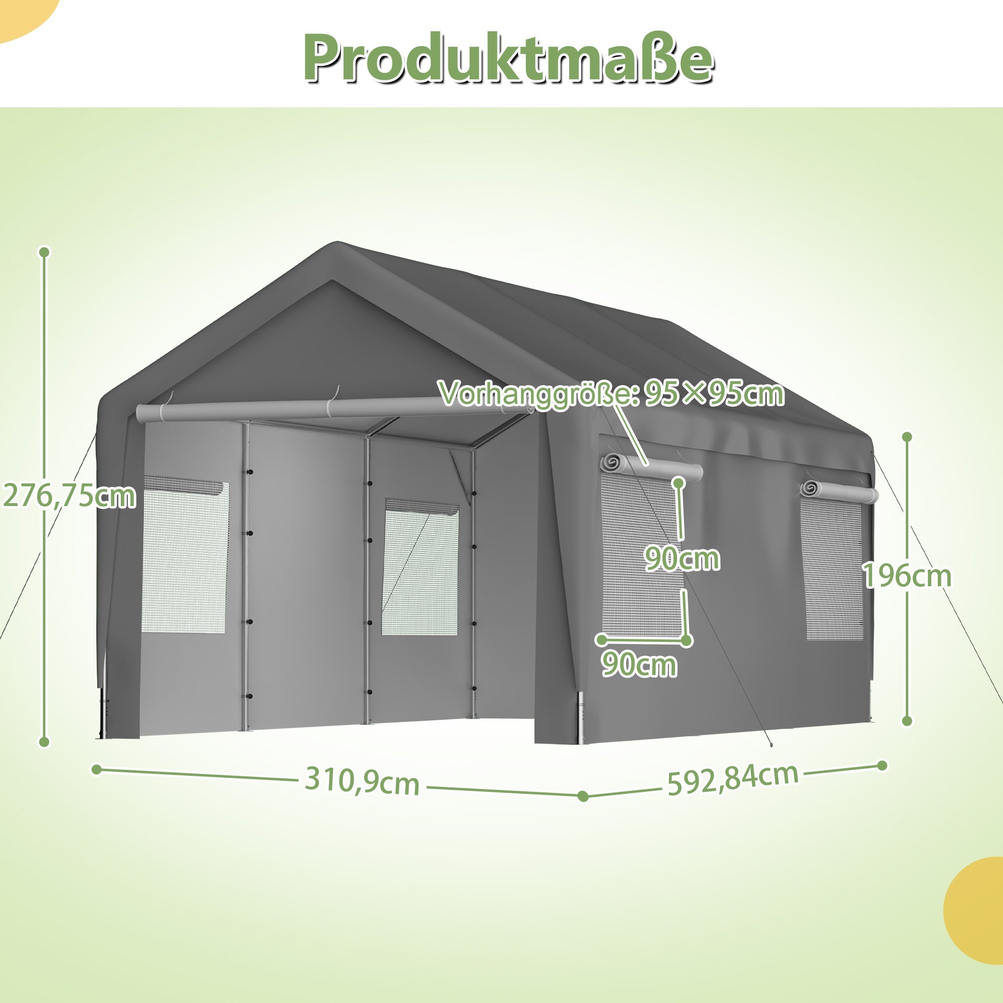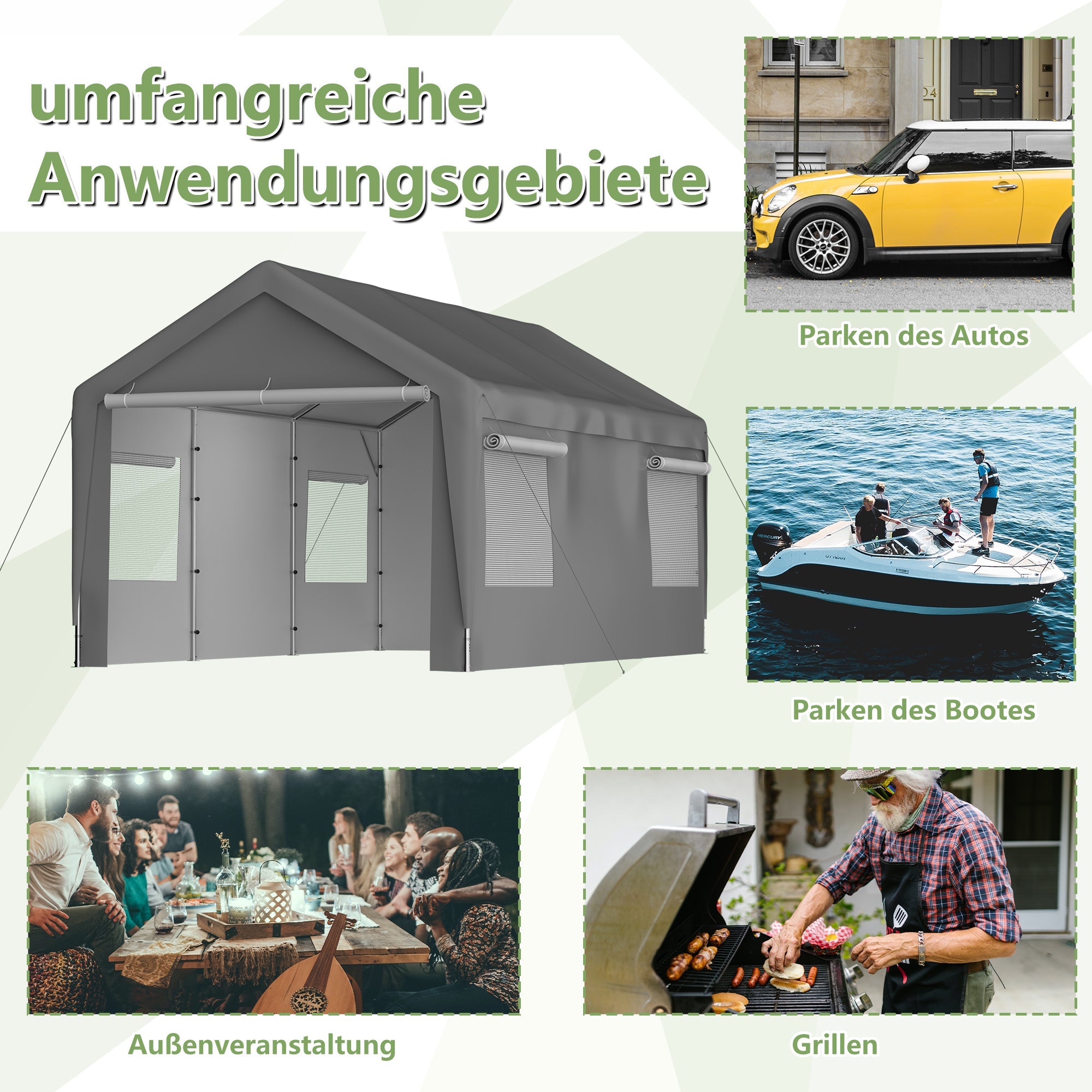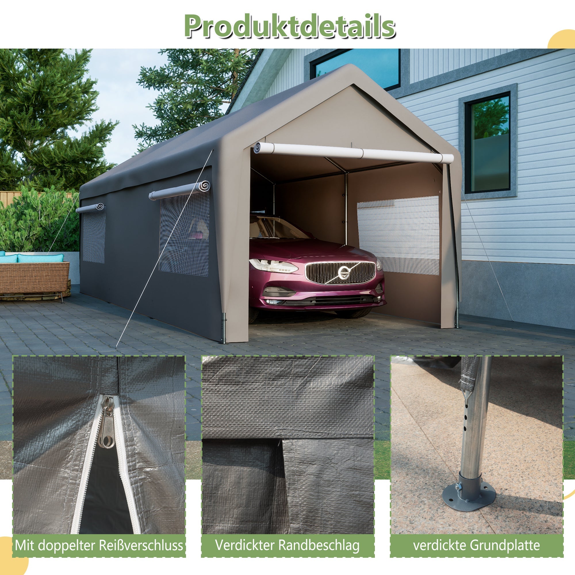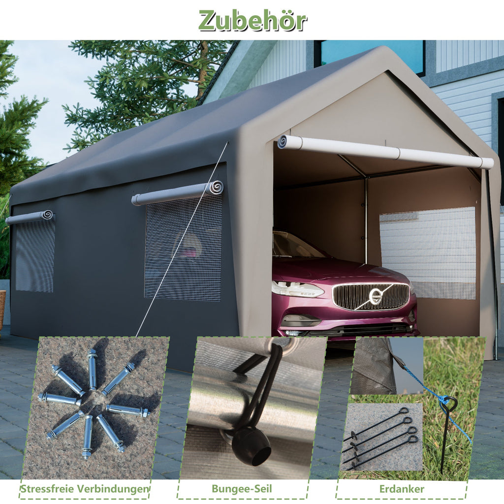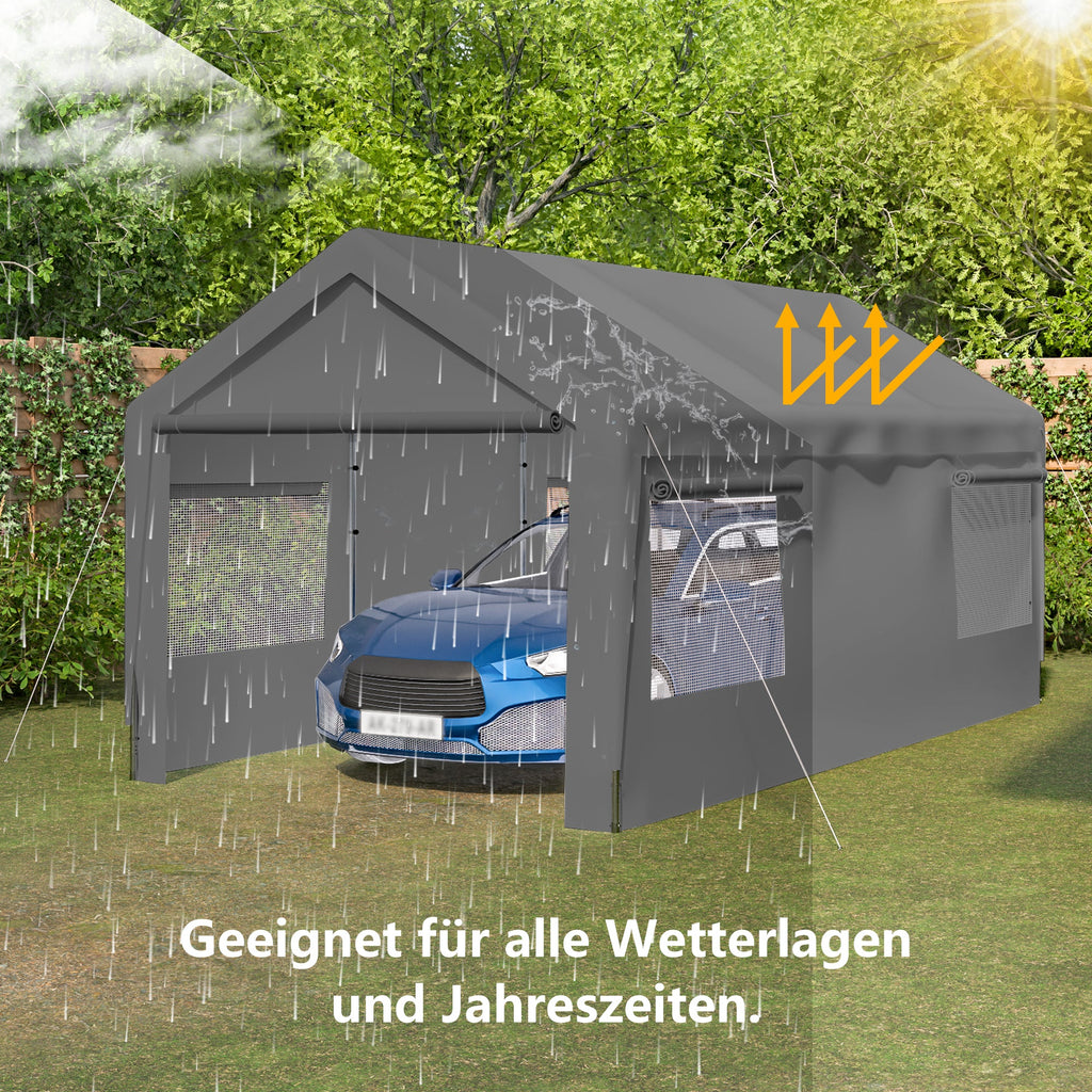 Carport Garage Tent 3x6m, Winterproof, Roll-Up Window, Removable Sidewalls and Roof, Grey