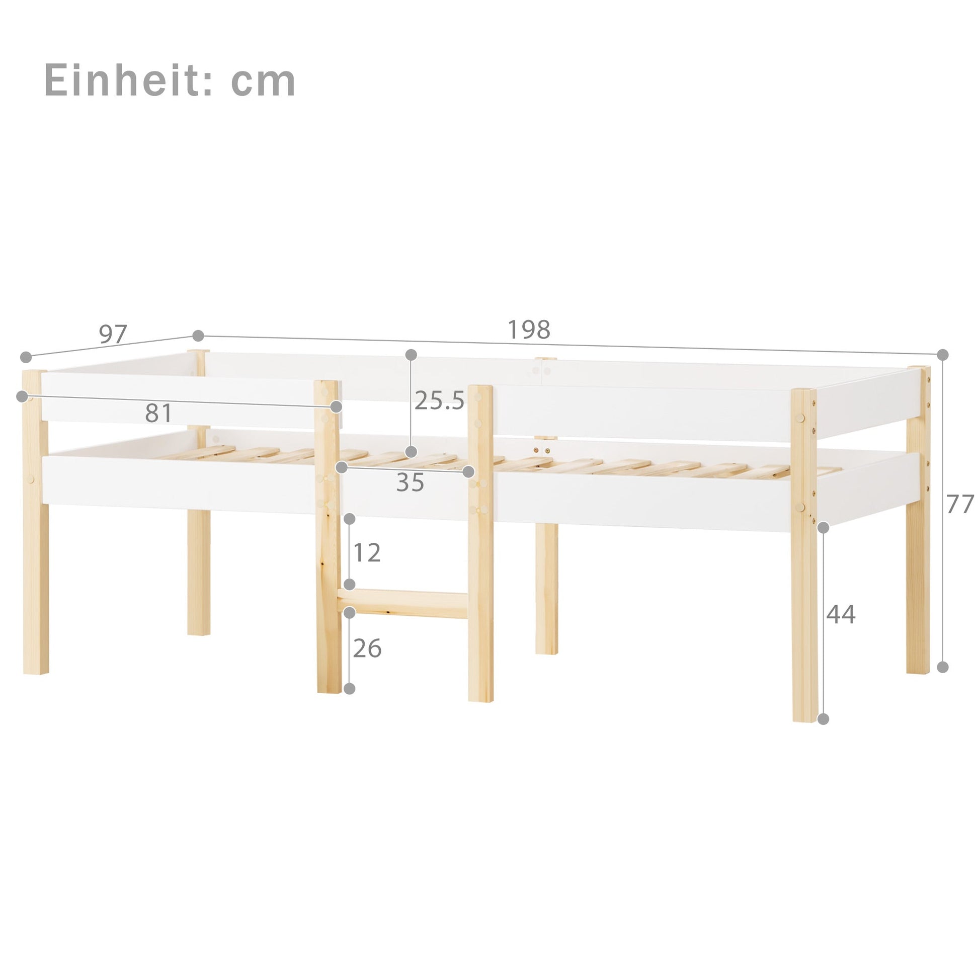 Children's bed with fall protection, 90x190 cm, solid pine wood, white & oak