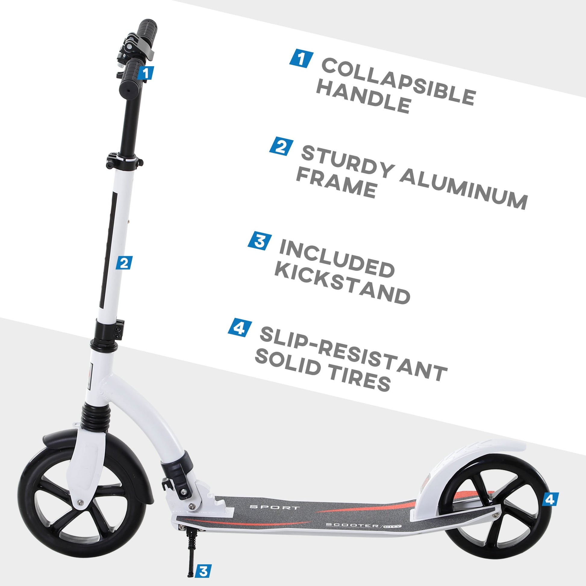 Children's Scooter, Foldable, Height Adjustable, Aluminum White