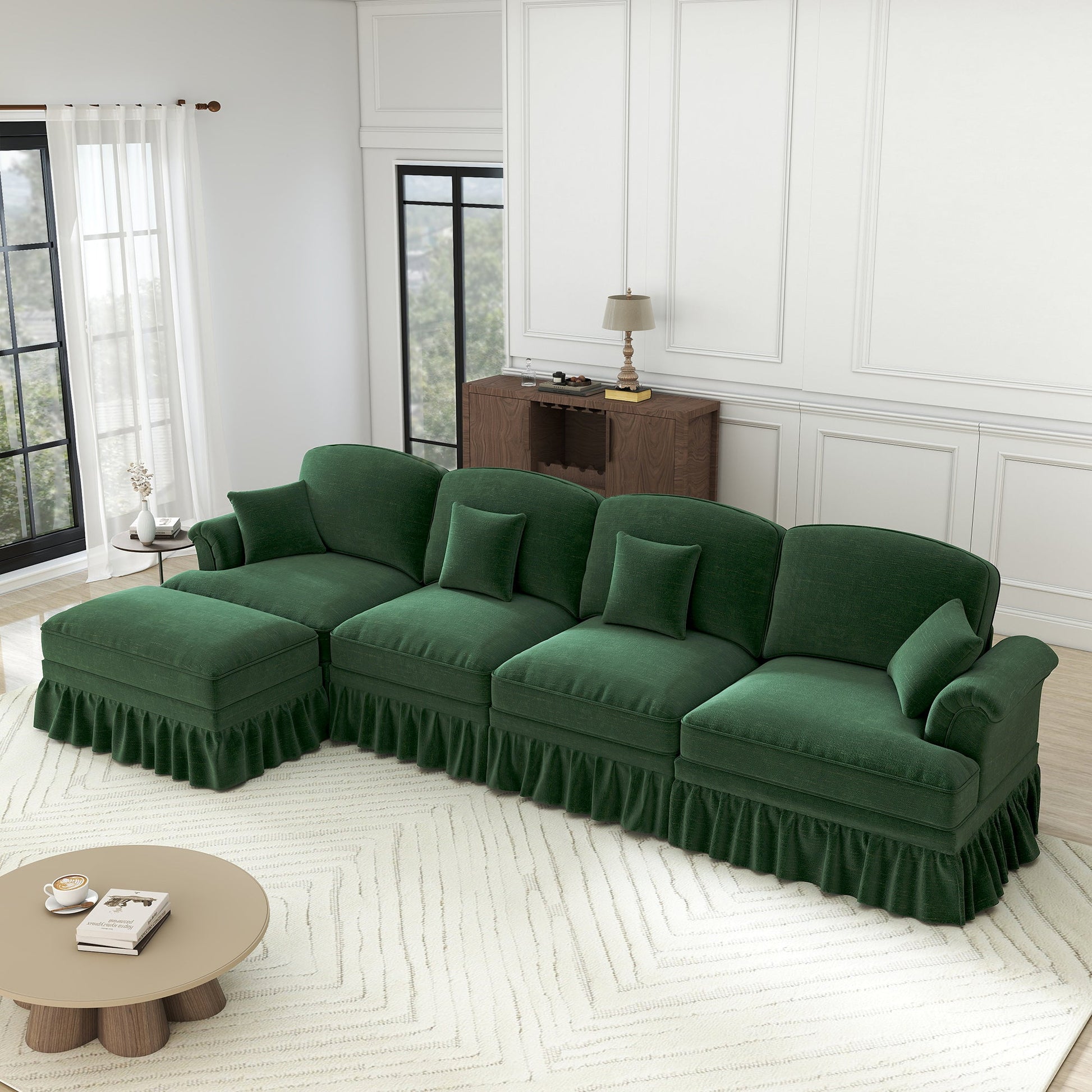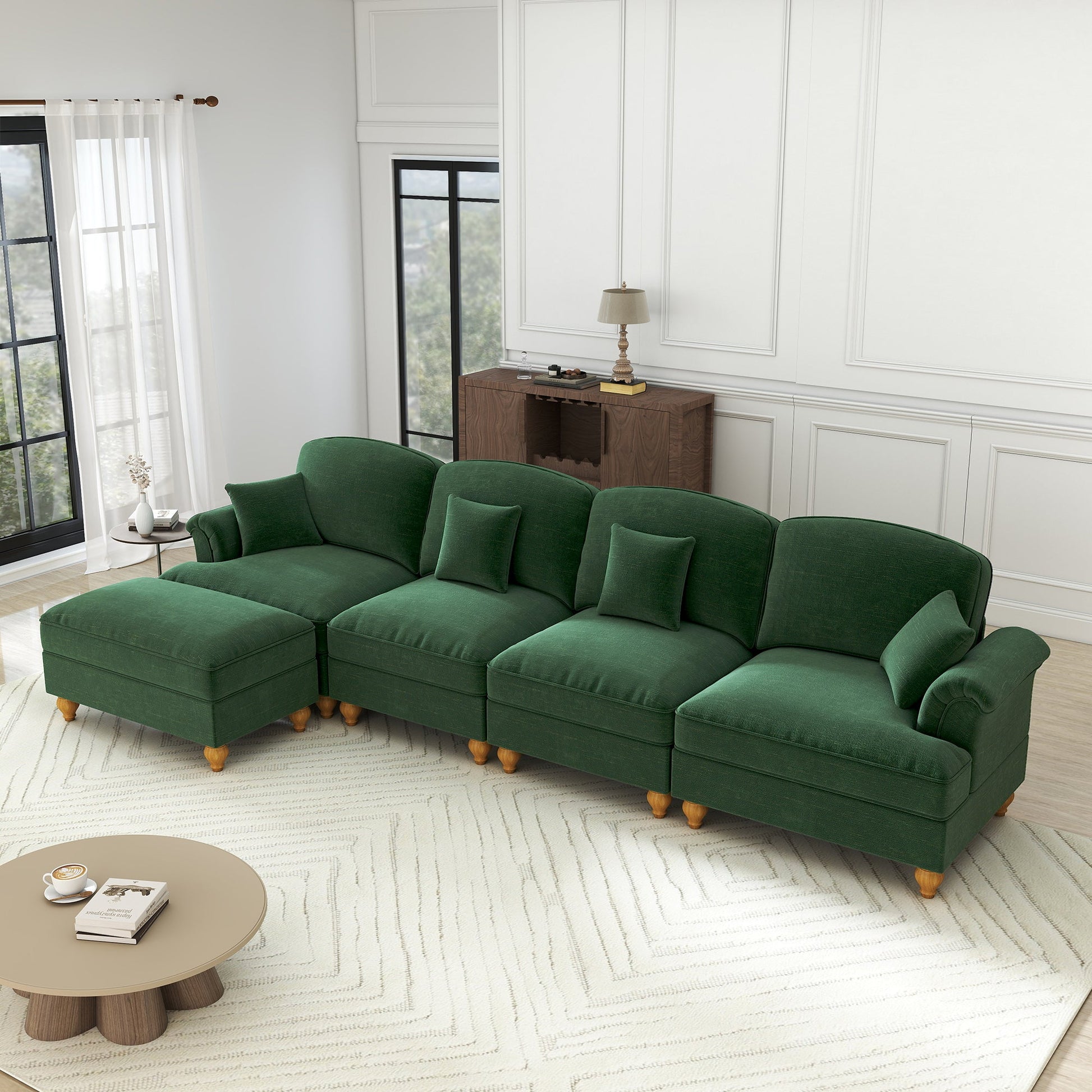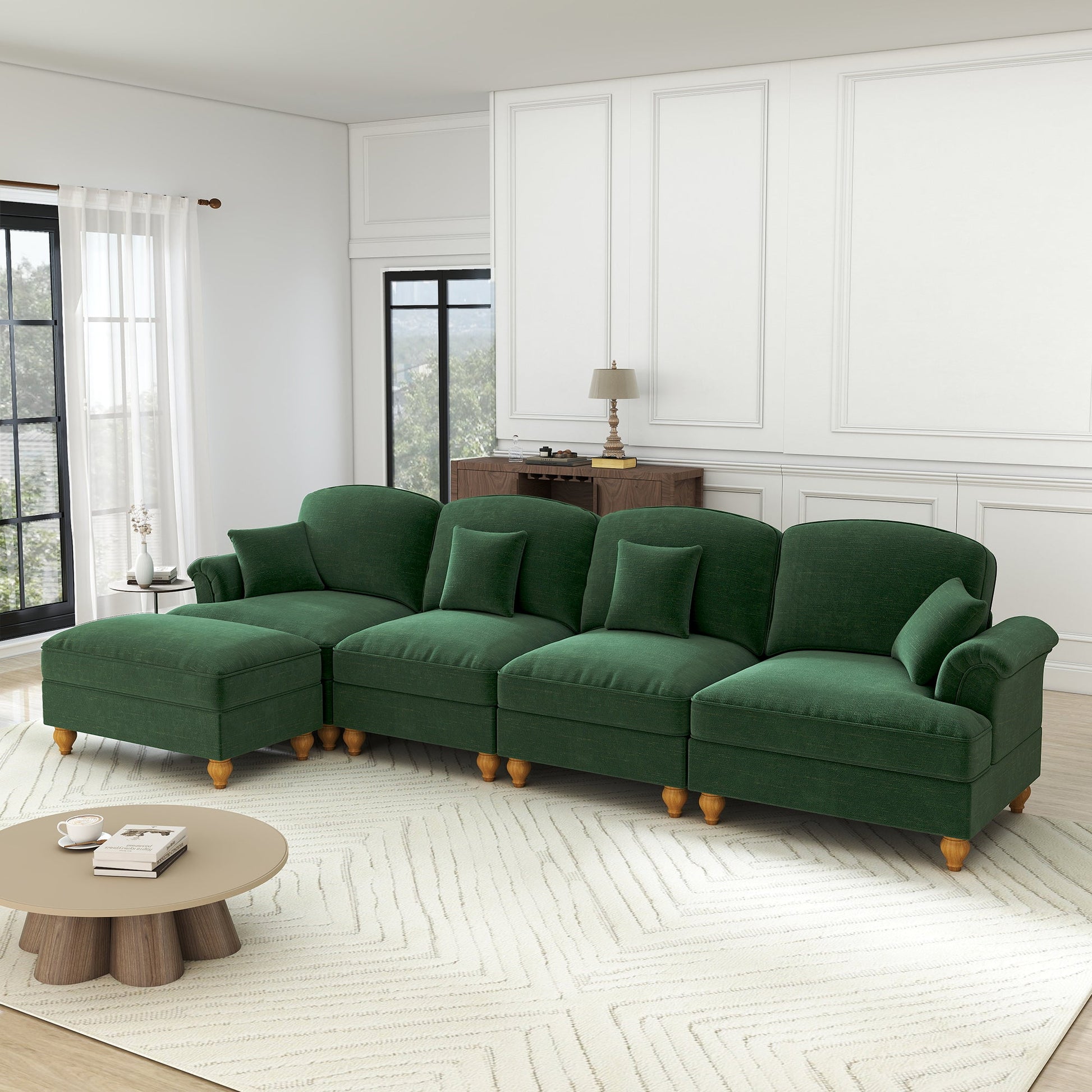 Classic Modular L-Shaped 4-Seater Sofa w/ Movable Ottoman Deep Seat, Chenille Green