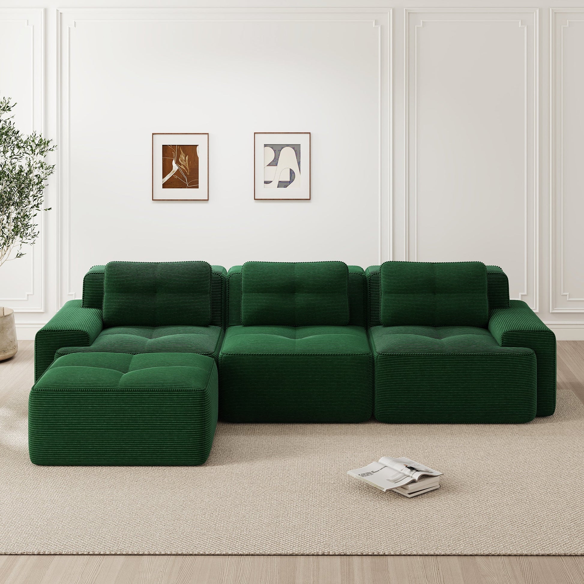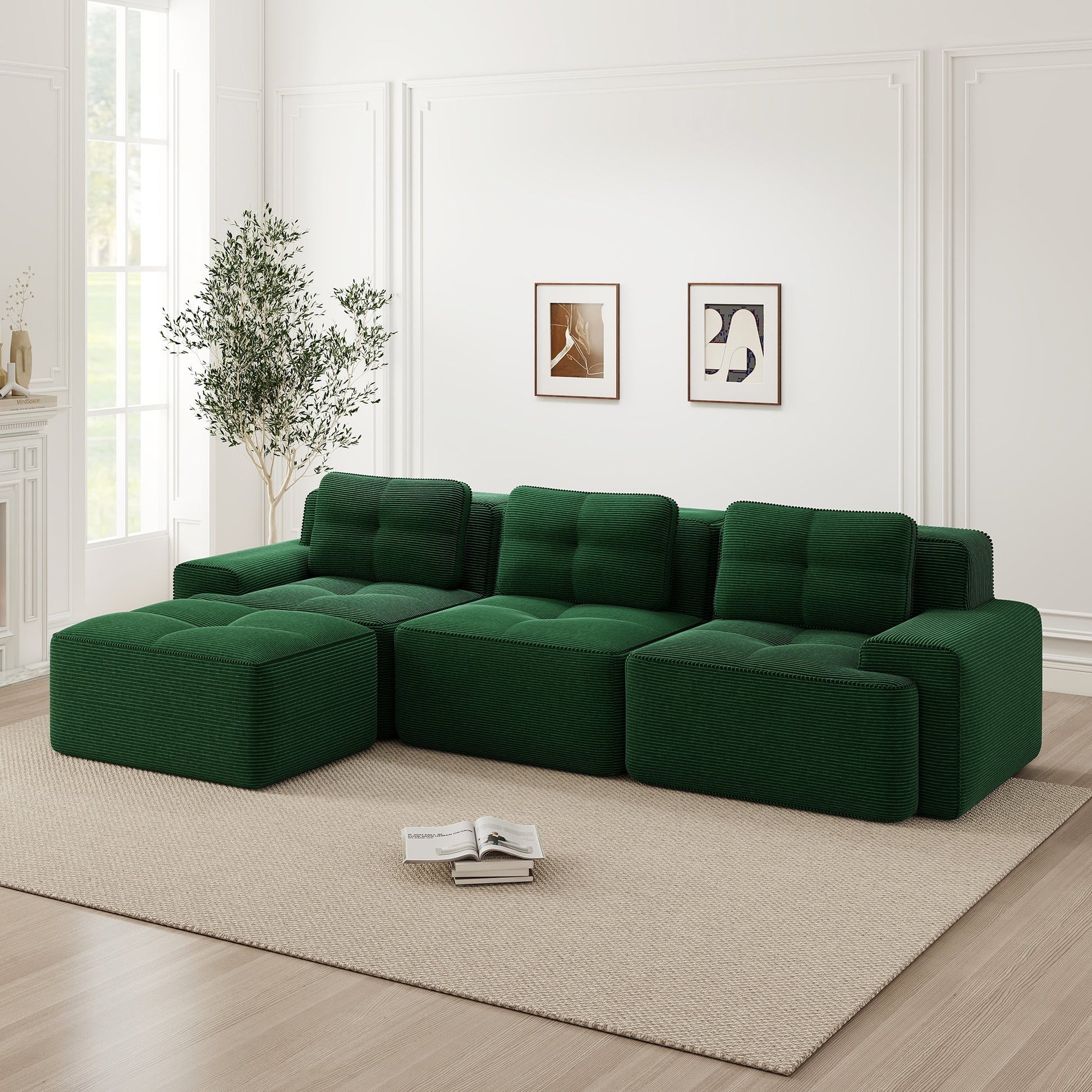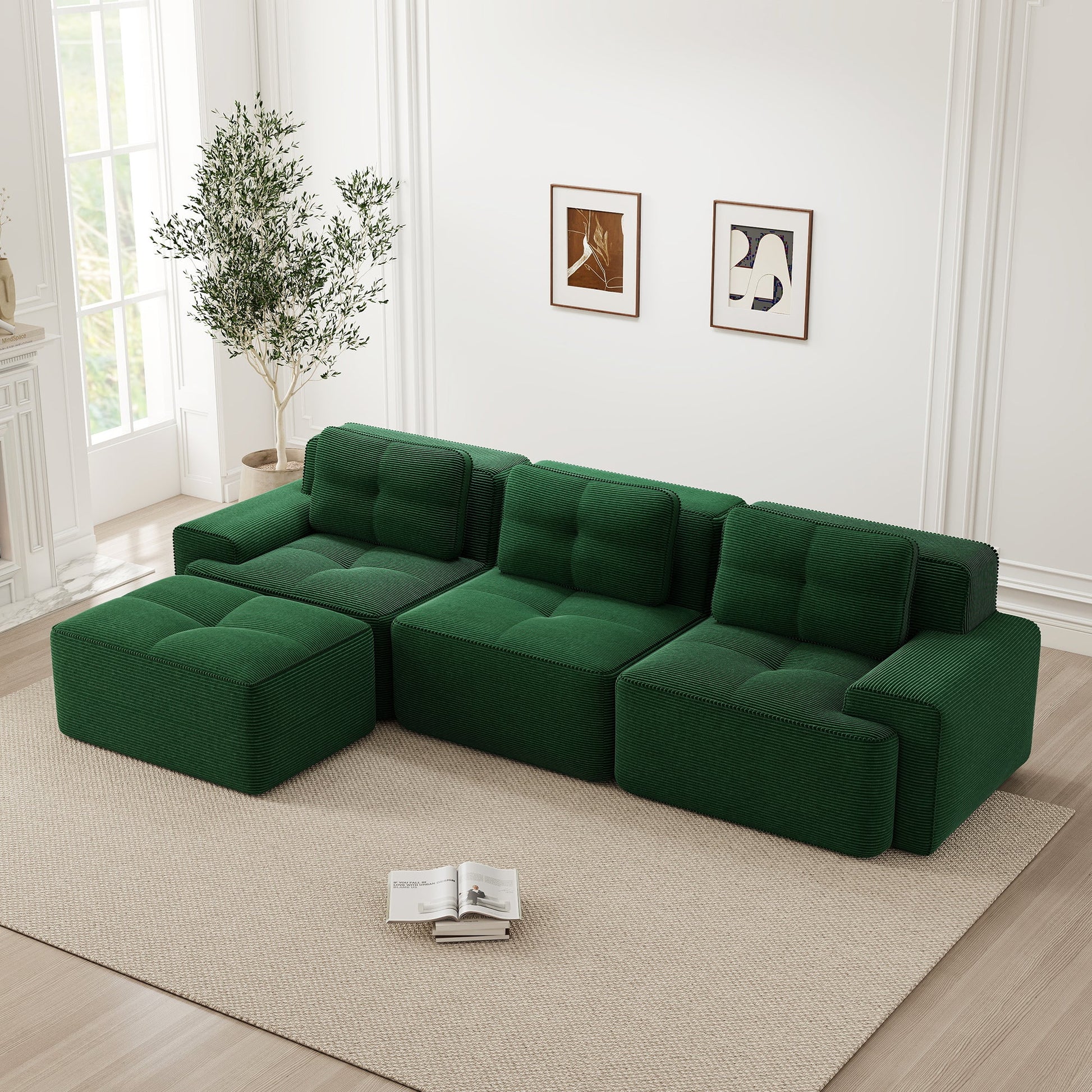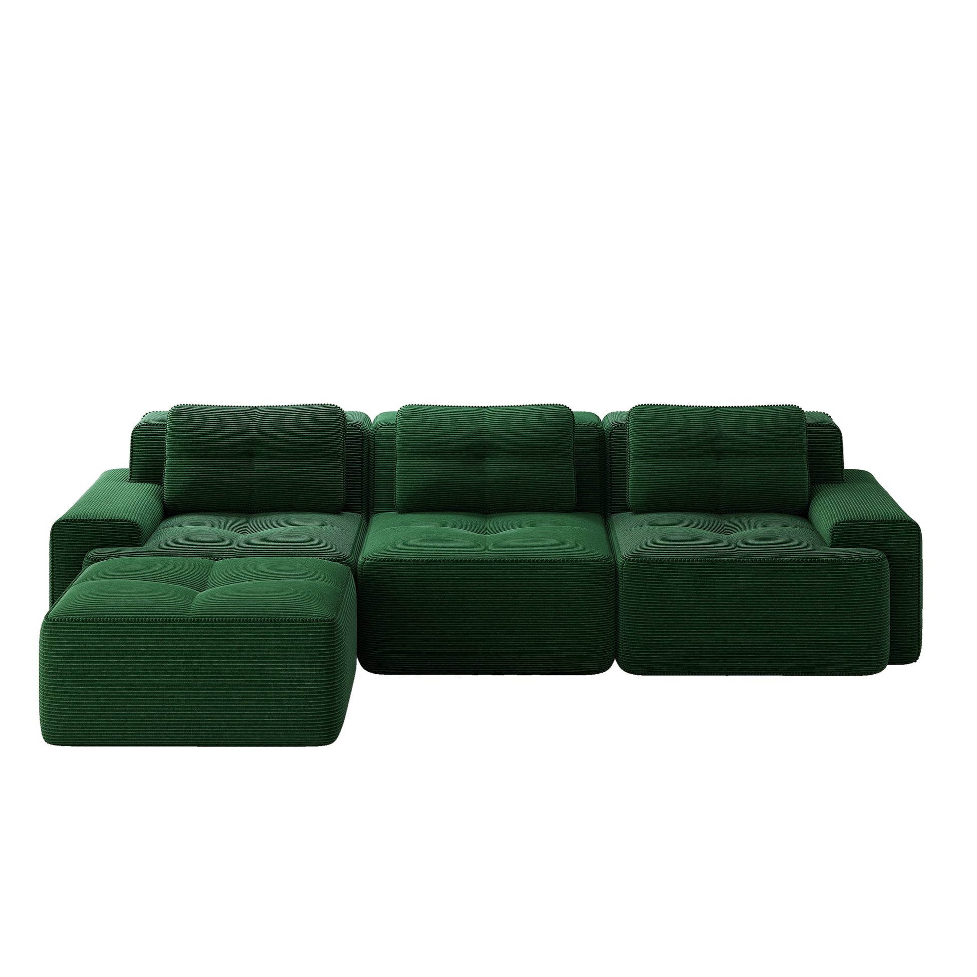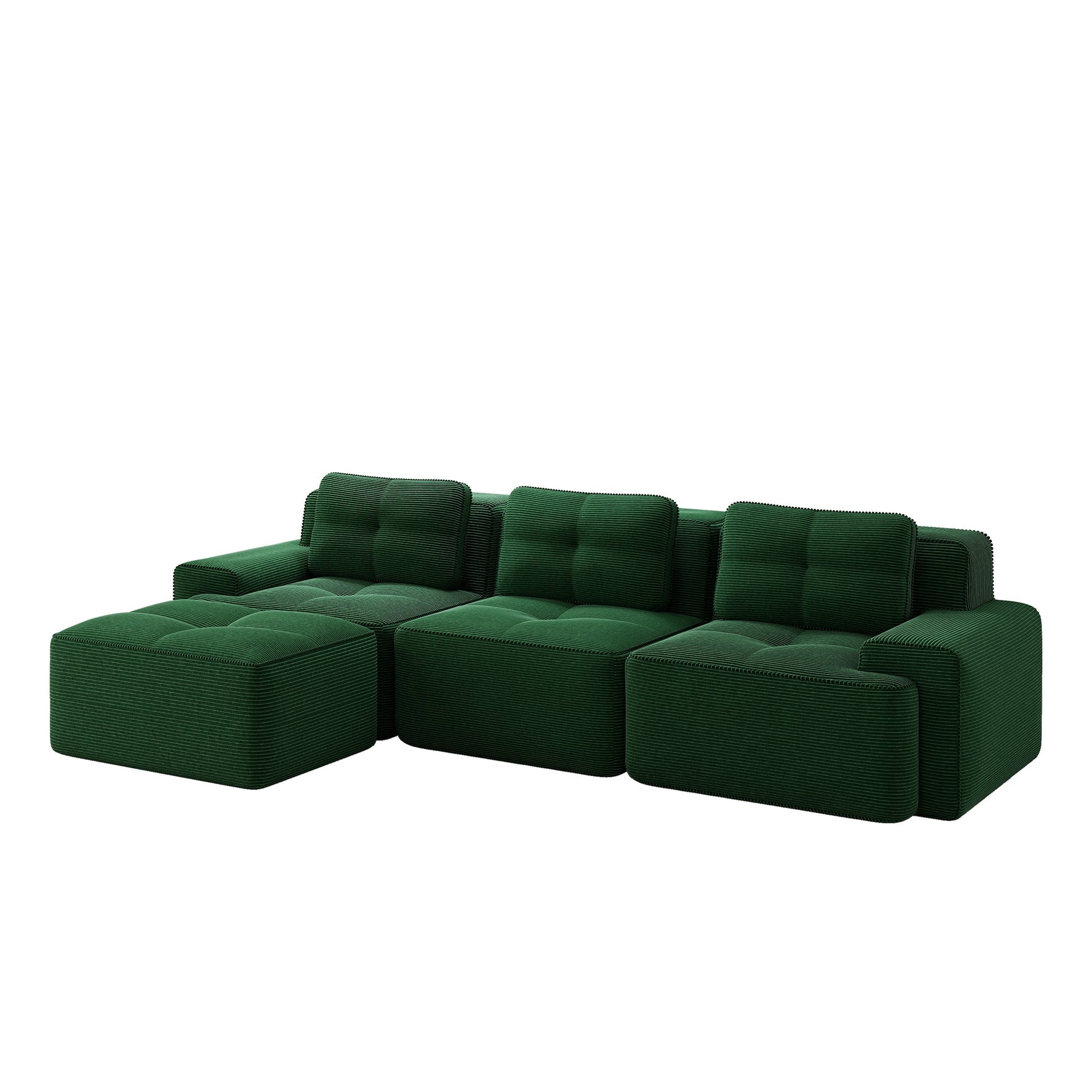 Cloud Modular Sofa L-Shape 3-Seater Ottoman - Corduroy Green