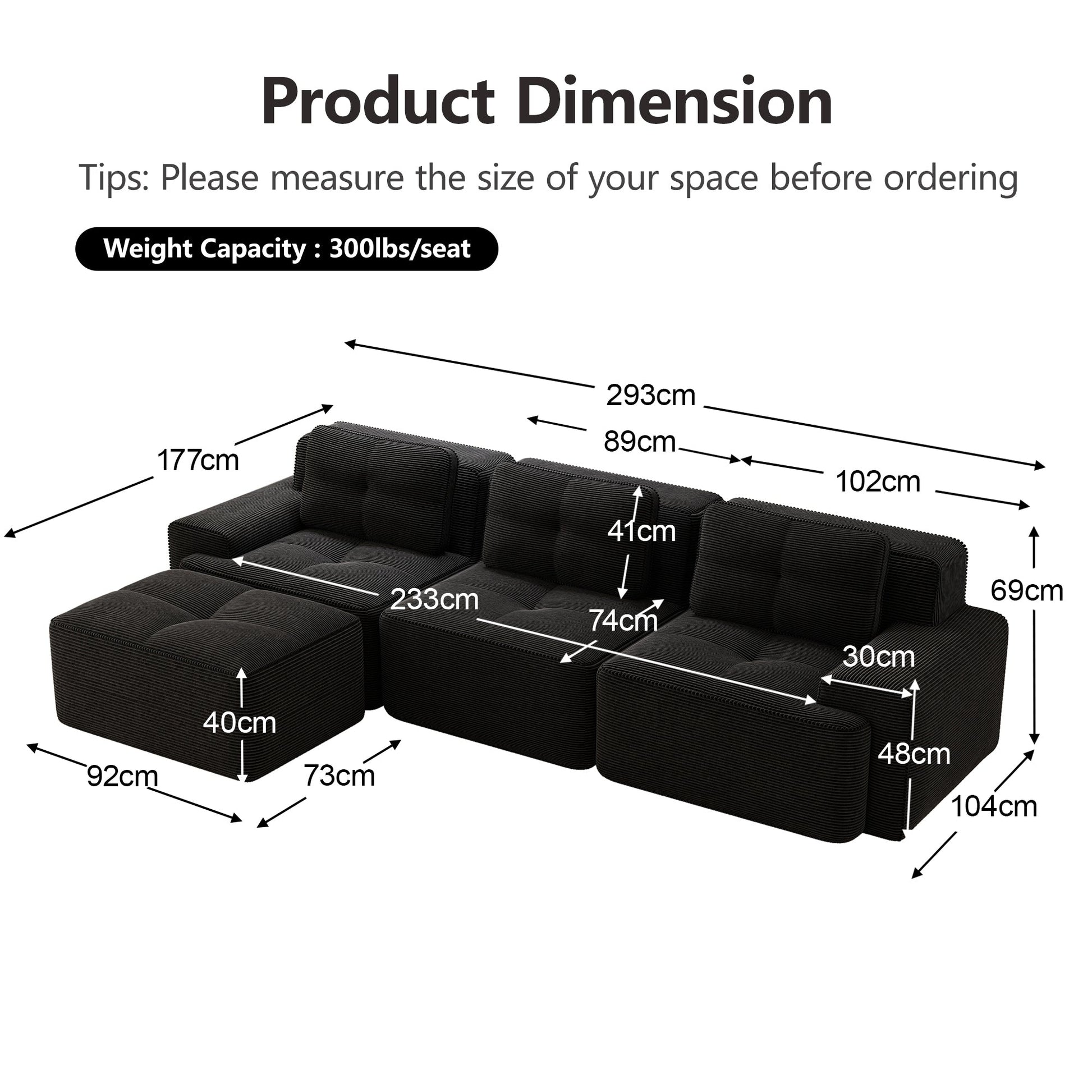 【Soft & Pet-Friendly Corduroy Fabric】Enjoy our corduroy sofa, wrapped in velvety-soft, breathable fabric that is both luxurious and durable. This modular sofa easily withstands pet scratches—with scratch-resistant, easy-to-clean material for complete peace of mind. Finished with pearl-like piping, it's a stylish yet practical sofa for the living room.