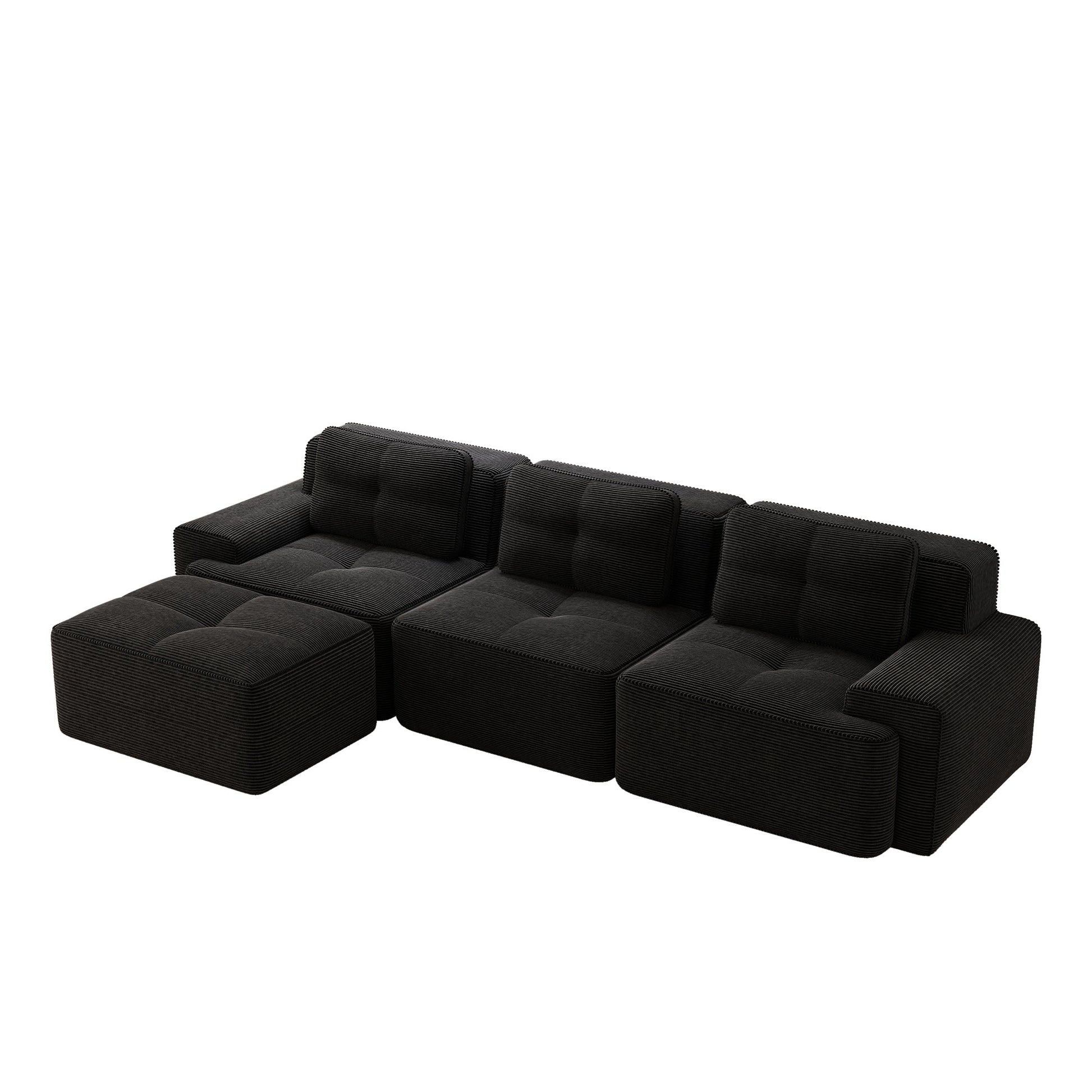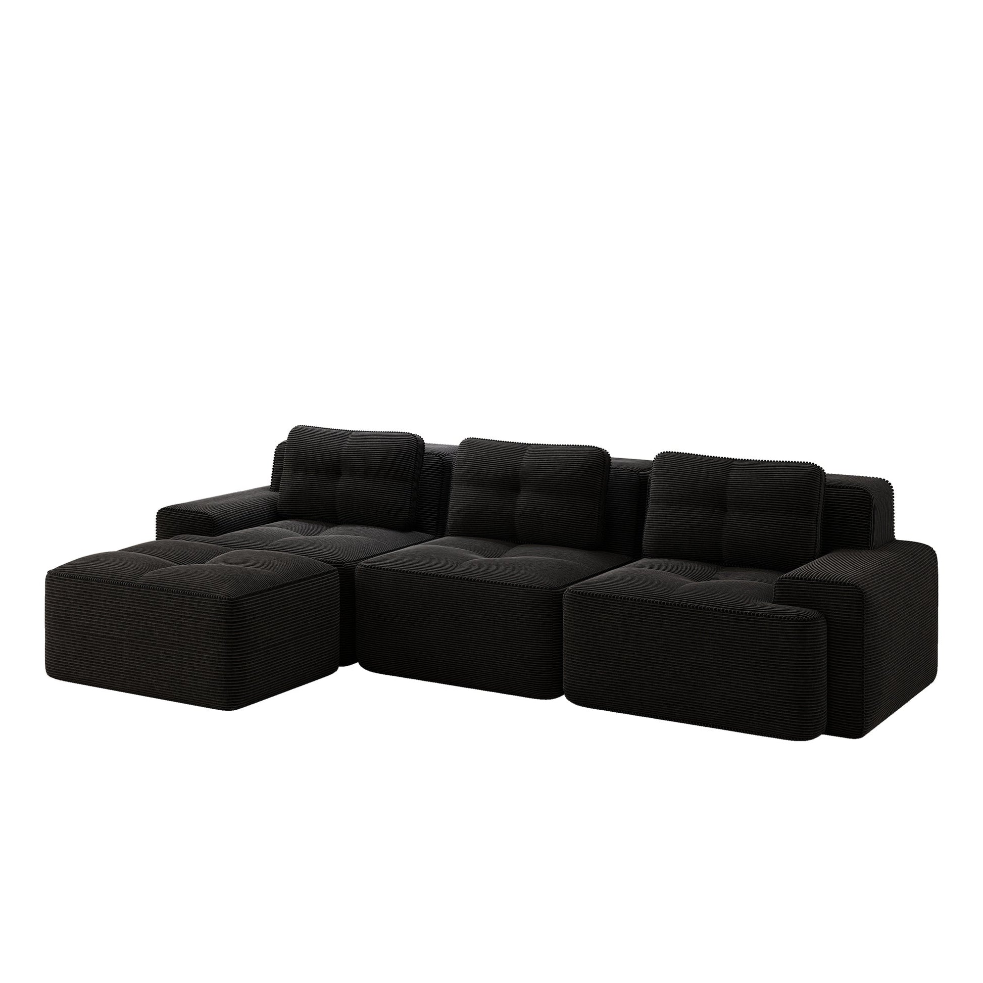 Cloud Modular Sofa L-shaped 3-Seater Ottoman Corduroy Black