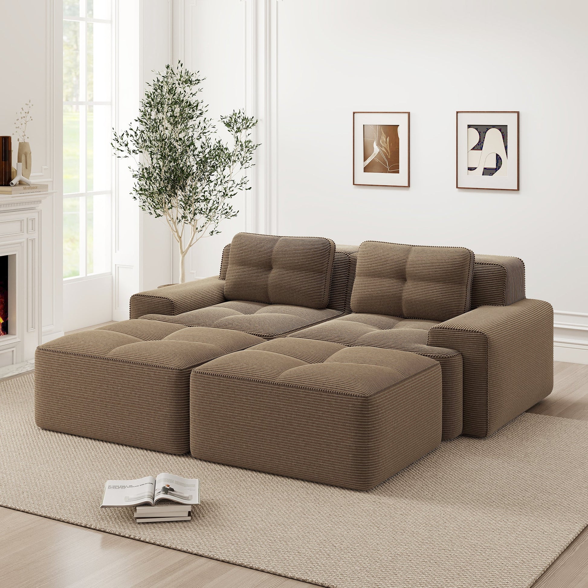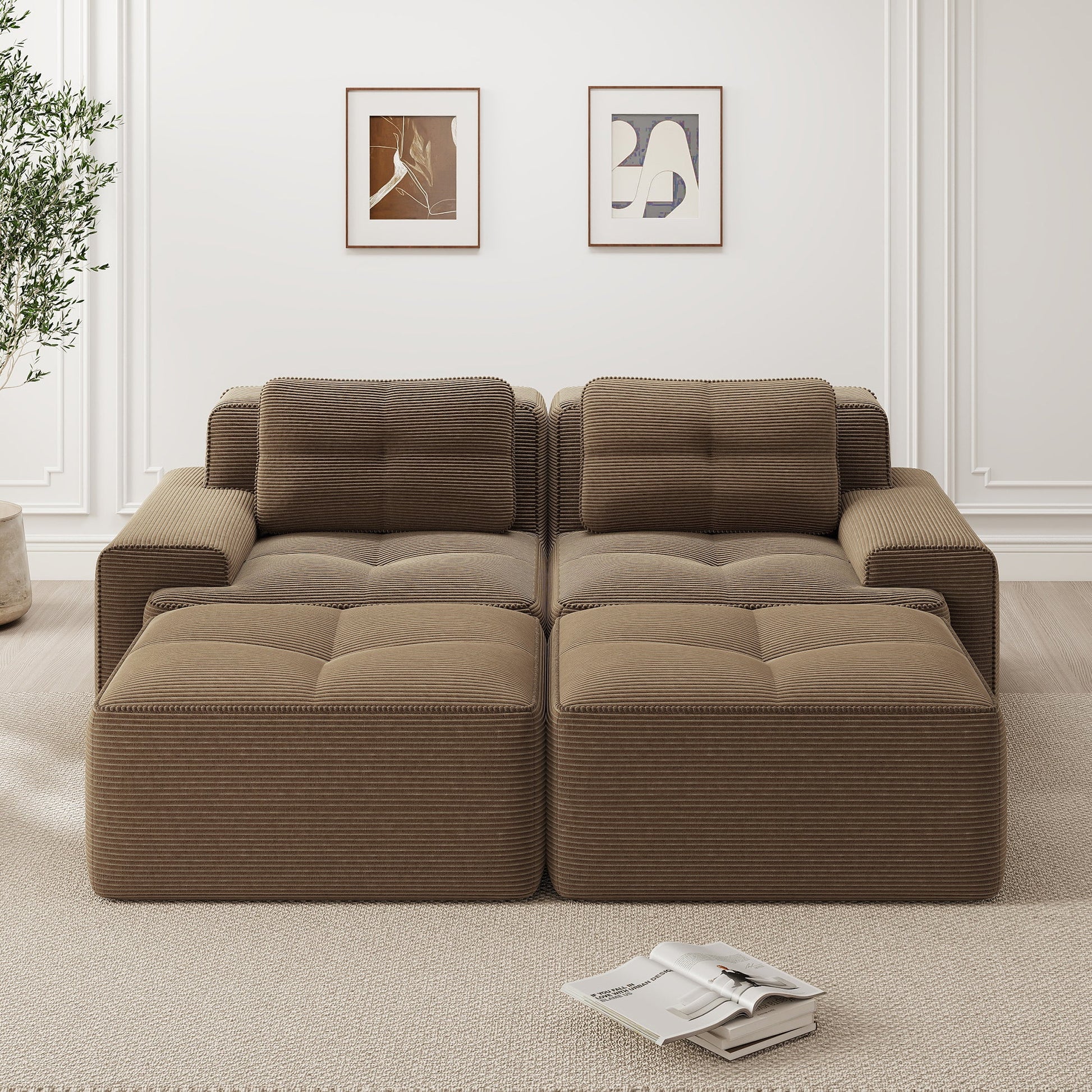 【Soft & Pet-Friendly Corduroy Fabric】Enjoy our corduroy sofa, wrapped in velvety-soft, breathable fabric that is both luxurious and durable. This modular sofa easily withstands pet scratches—with scratch-resistant, easy-to-clean material for complete peace of mind. Finished with pearl-like piping, it's a stylish yet practical sofa for the living room.