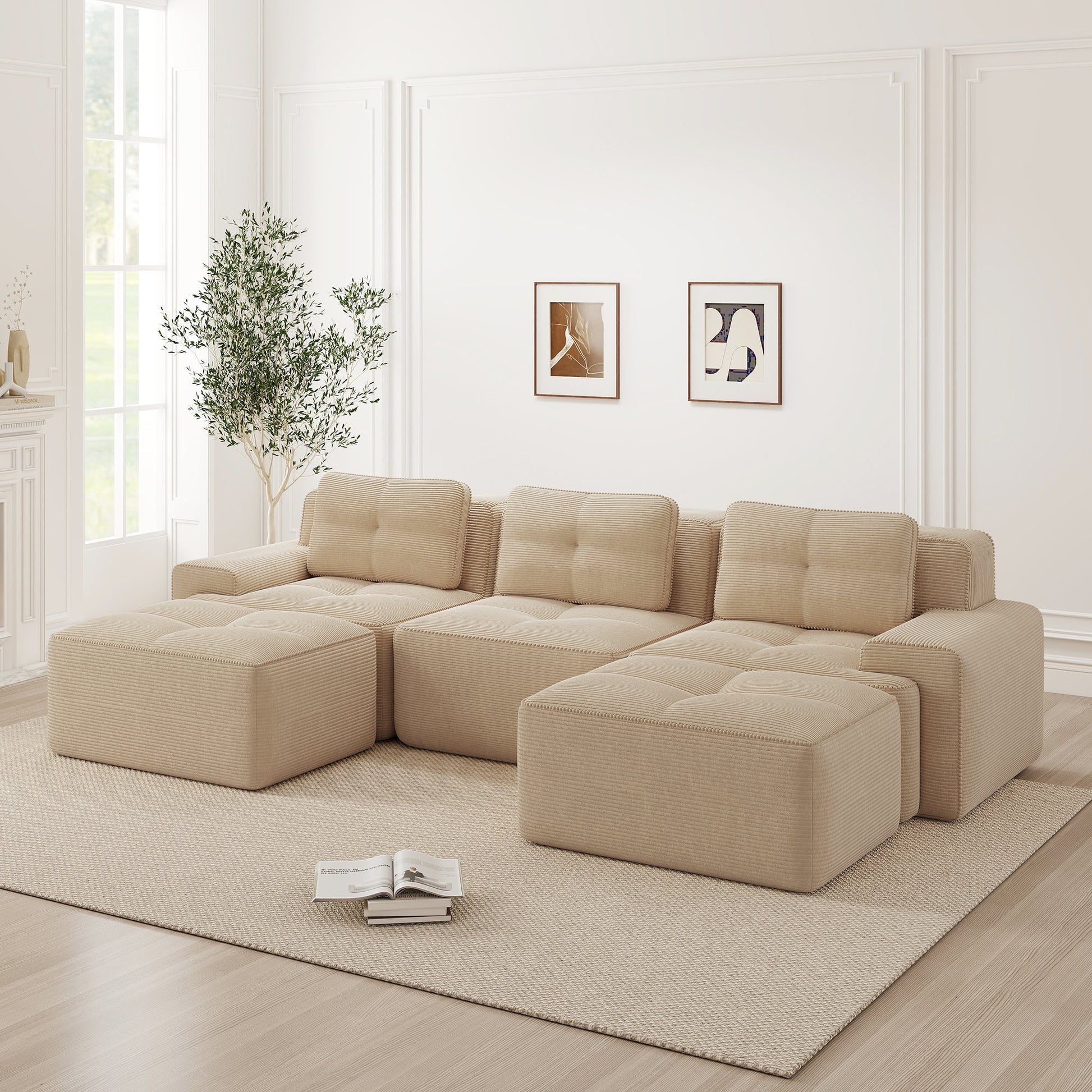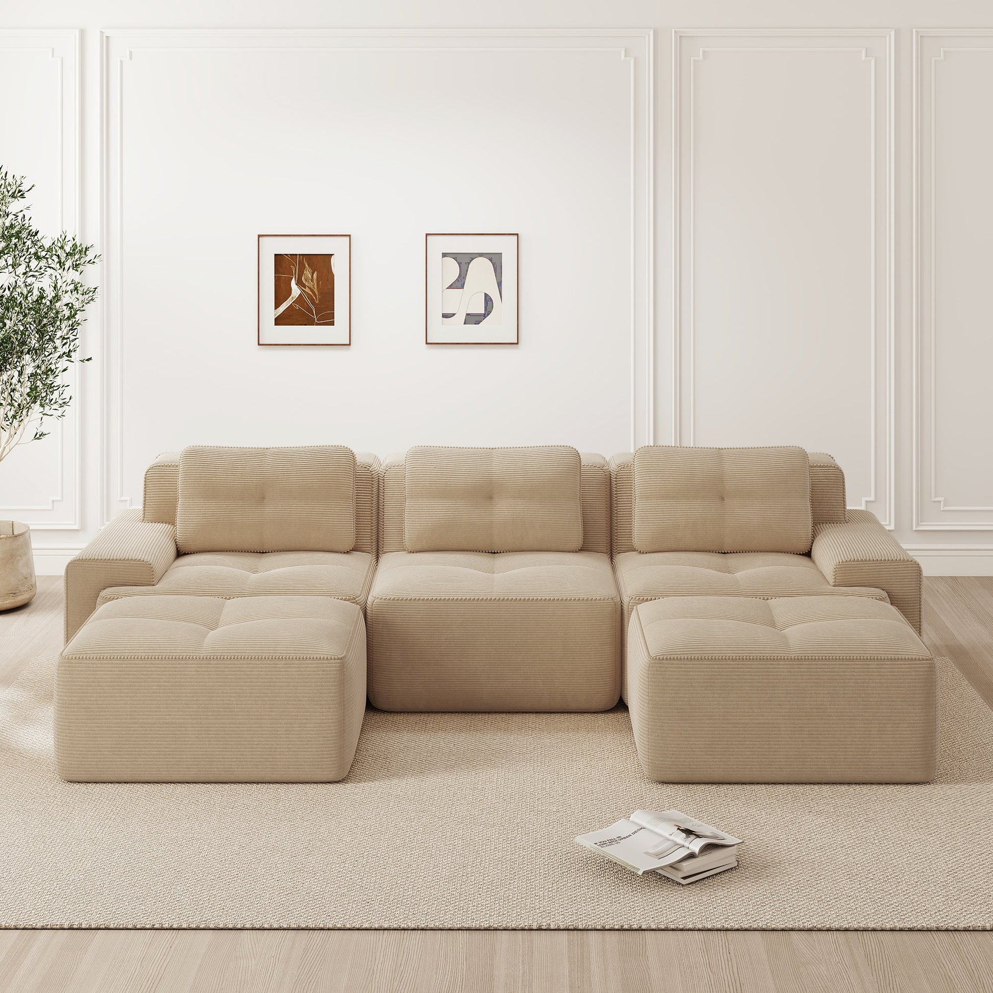 【Soft & Pet-Friendly Corduroy Fabric】Enjoy our corduroy sofa, wrapped in velvety-soft, breathable fabric that is both luxurious and durable. This modular sofa easily withstands pet scratches—with scratch-resistant, easy-to-clean material for complete peace of mind. Finished with pearl-like piping, it's a stylish yet practical sofa for the living room.