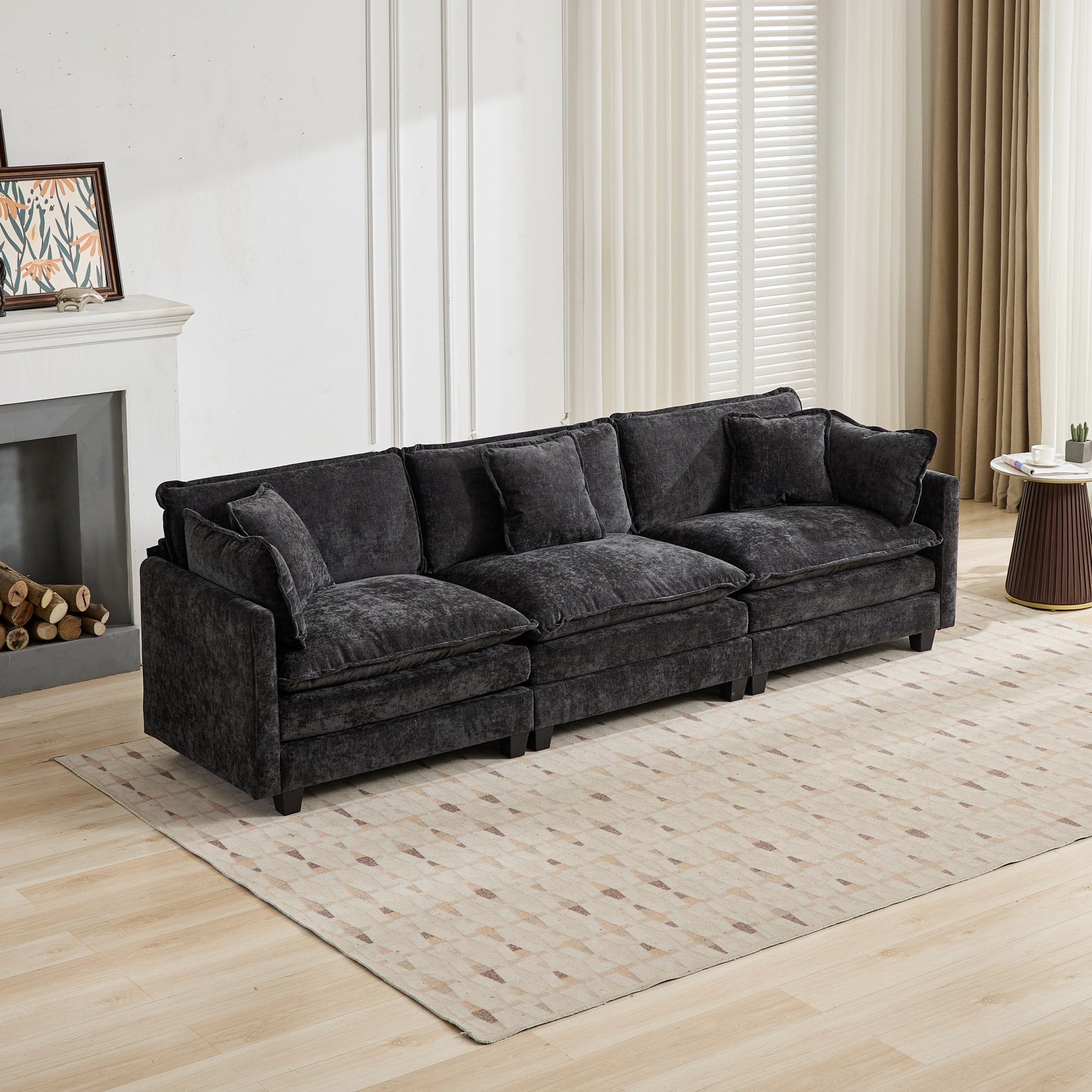 Cloud Sofa One-Seat Modern Sectional Double Layer Cushion - Black Chenille