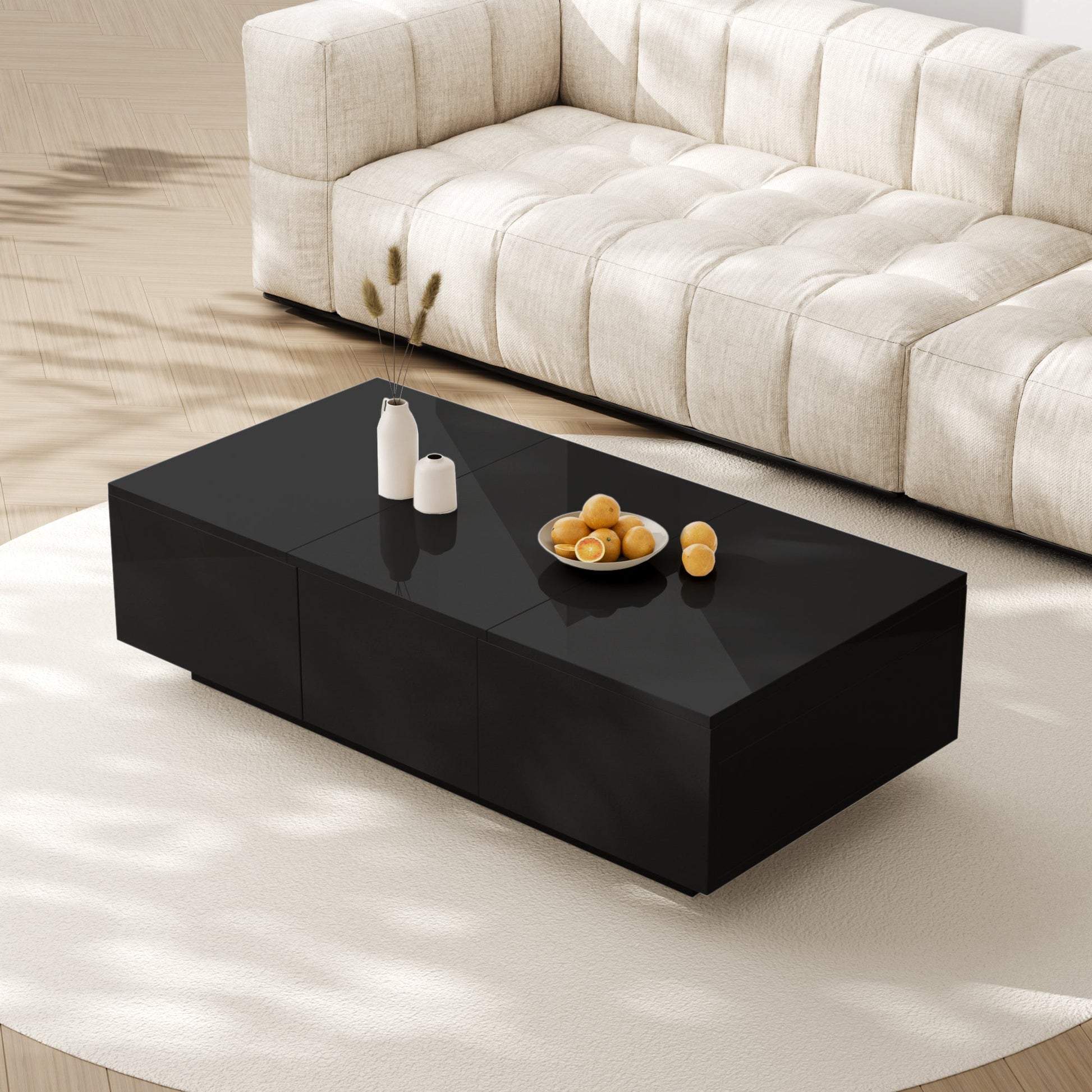 Black High-Gloss Coffee Table with Push-Pull Storage