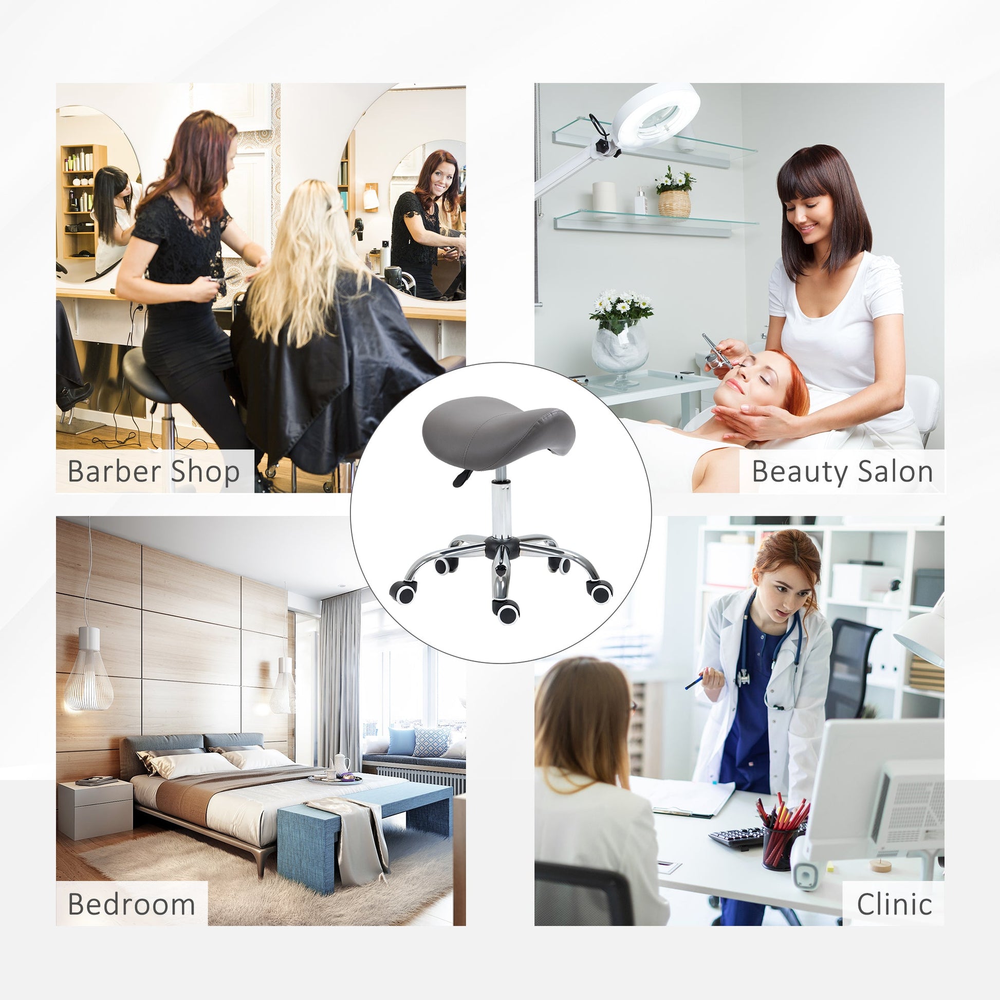 Cosmetic Saddle Stool, 360° Rotate Height Adjustable Rolling, Faux Leather Grey