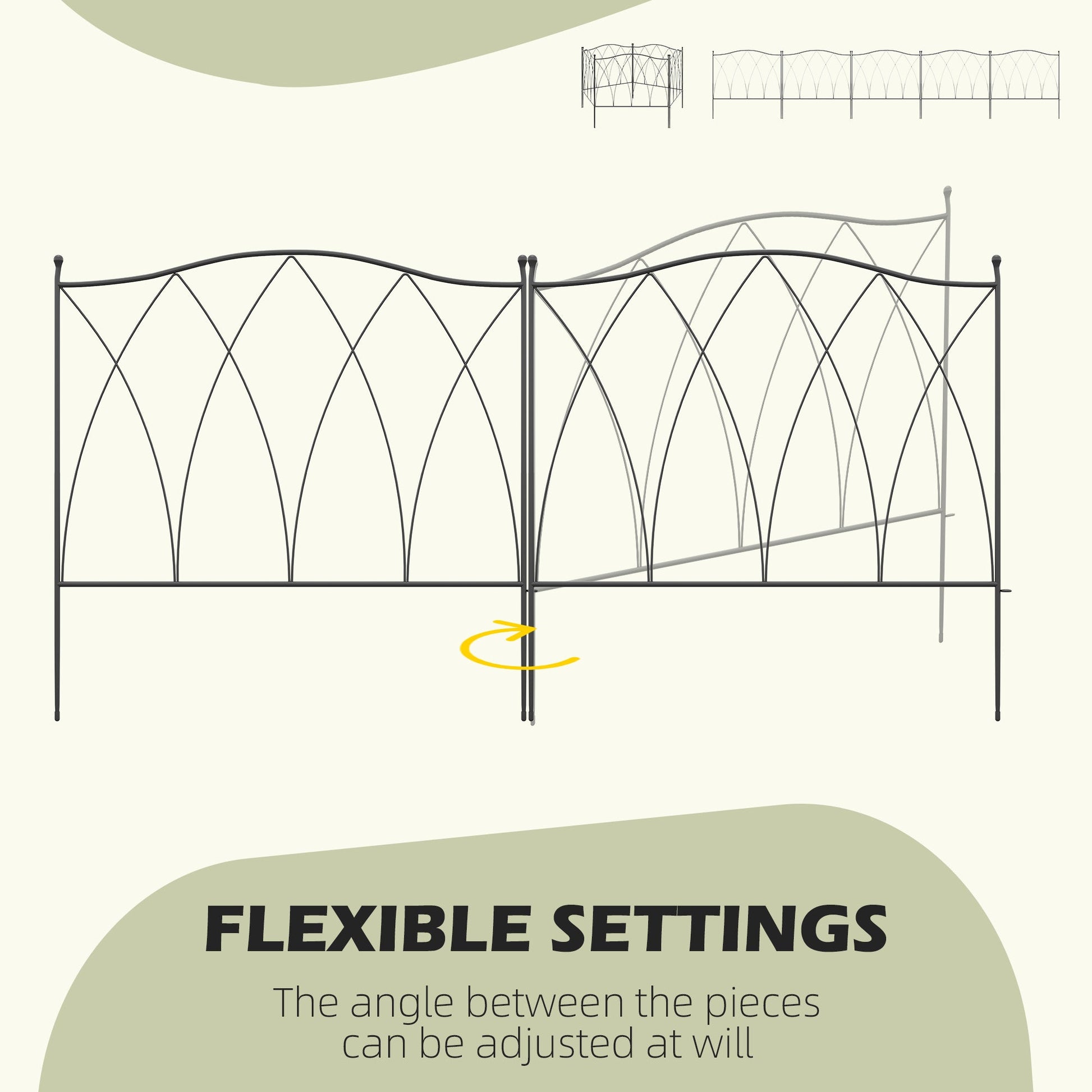 This set of decorative garden fence panels offers 3.05m of flexible fencing that can be shaped to suit various areas. Each piece measures 61.5W x 62Hcm.