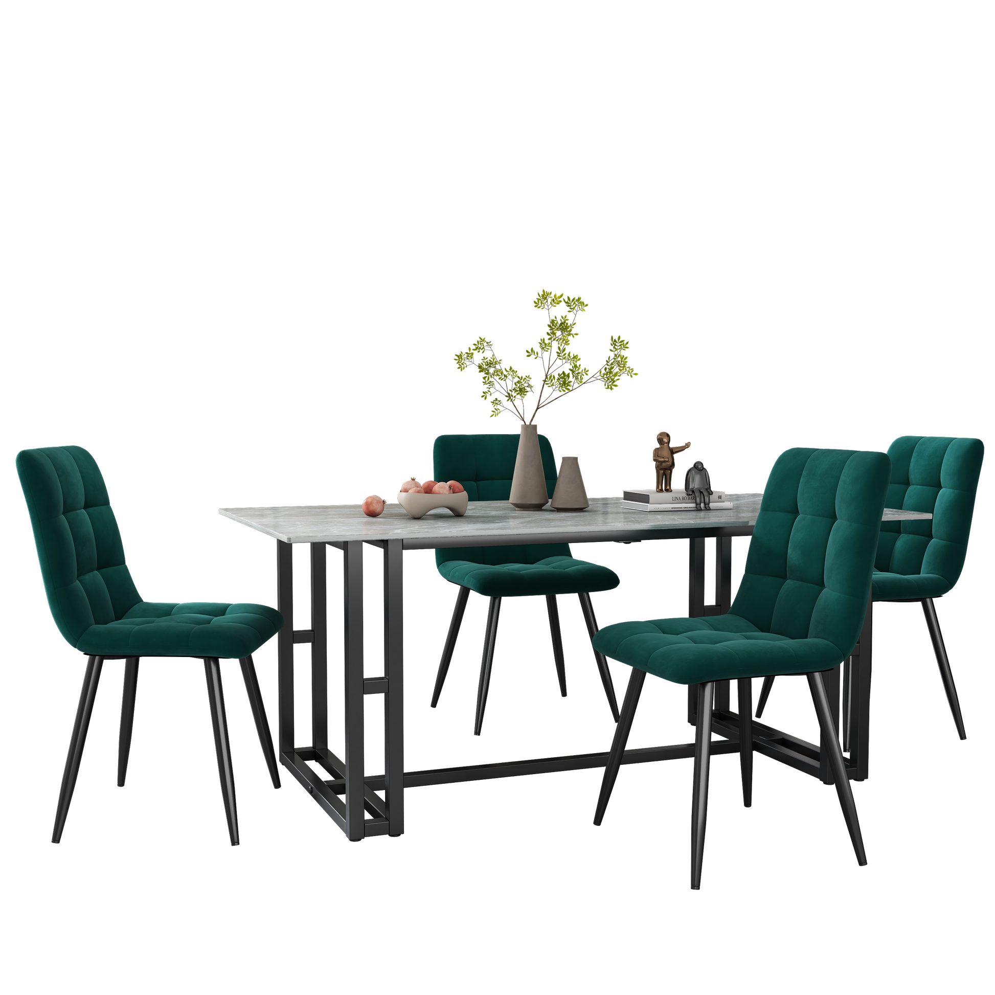 Dining Chair (4 pcs), Dark Green, Velvet Upholstered with Backrest, Metal Frame