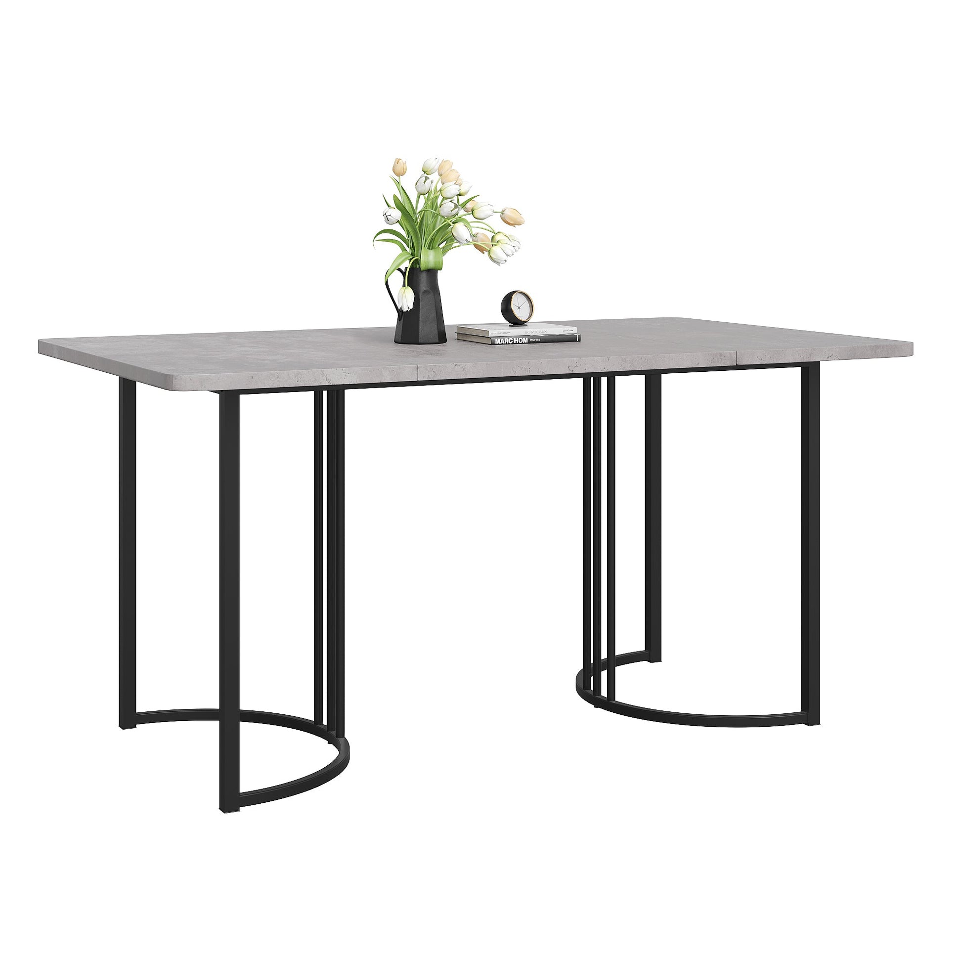 Dining Table 140x80cm Rectangular Kitchen Adjustable Legs Metal Frame Grey