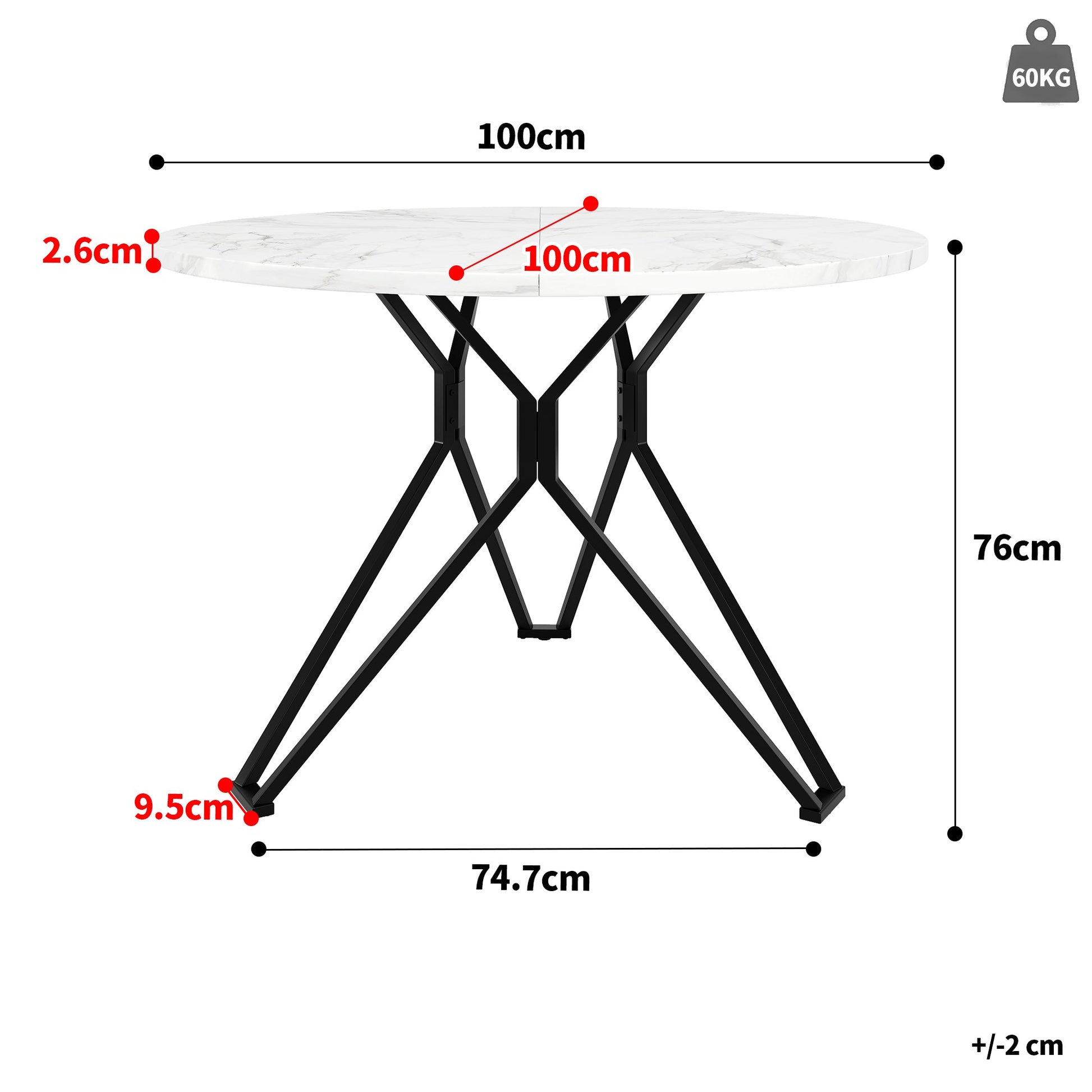 Table Size: 100*100*76cm
